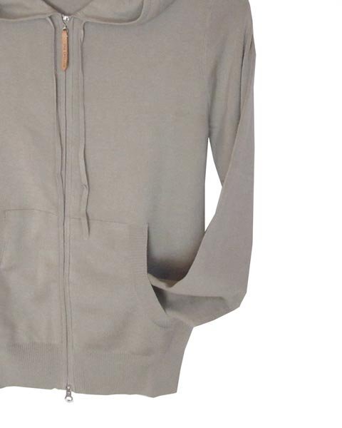 | さらっとした薄手ニット生地のパーカー。上品なグレージュでコーディネートしやすいお色目。春先から秋口まで活躍してくれます。 |