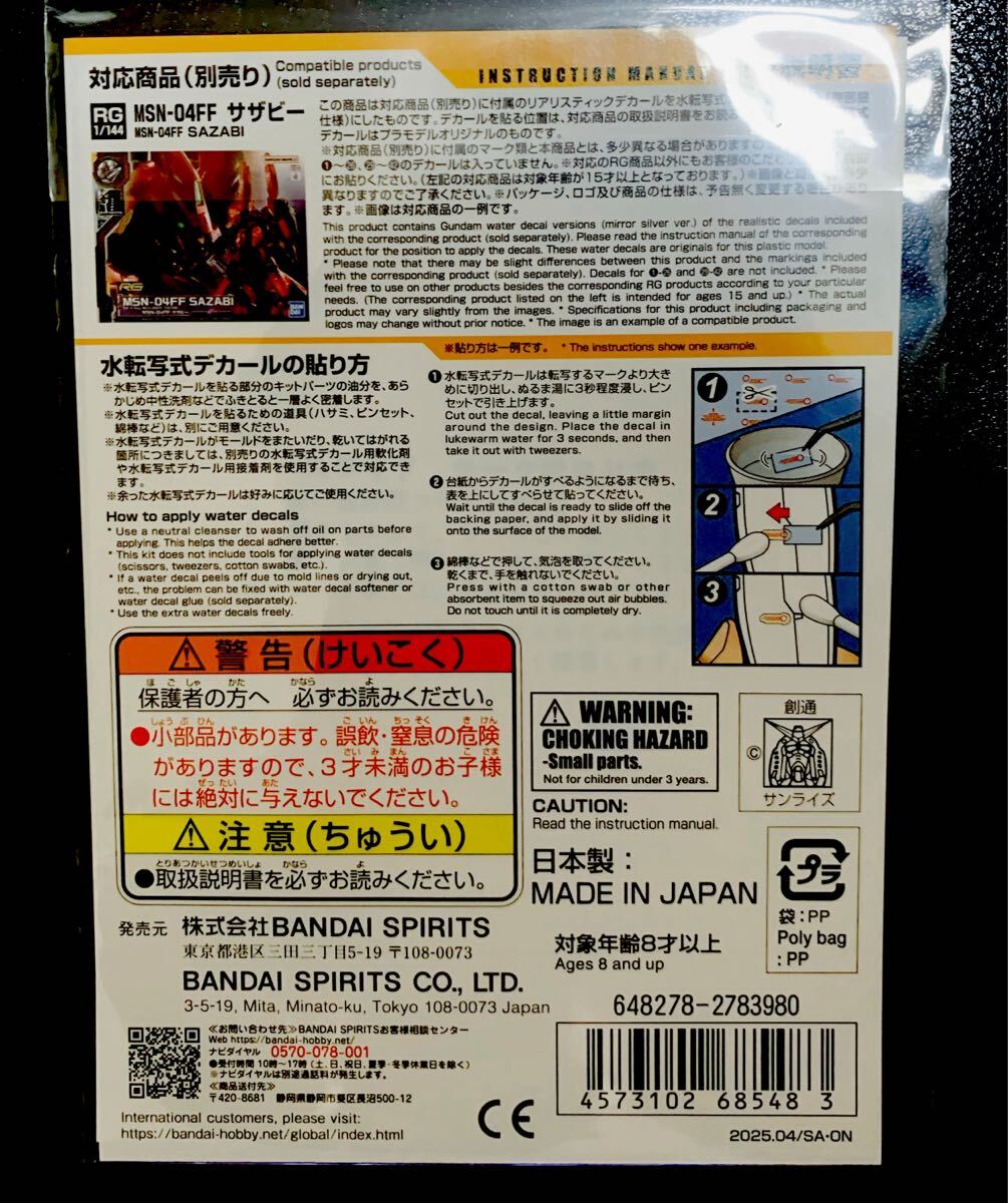 | ●●●NEW【即落】ガンダムデカール RG1/144 MSN-04FF サザビー用 SP Ver.●ガンプラ水転写式●バンダイBANDAI●純正●新品未開封●●● | |||||||||||