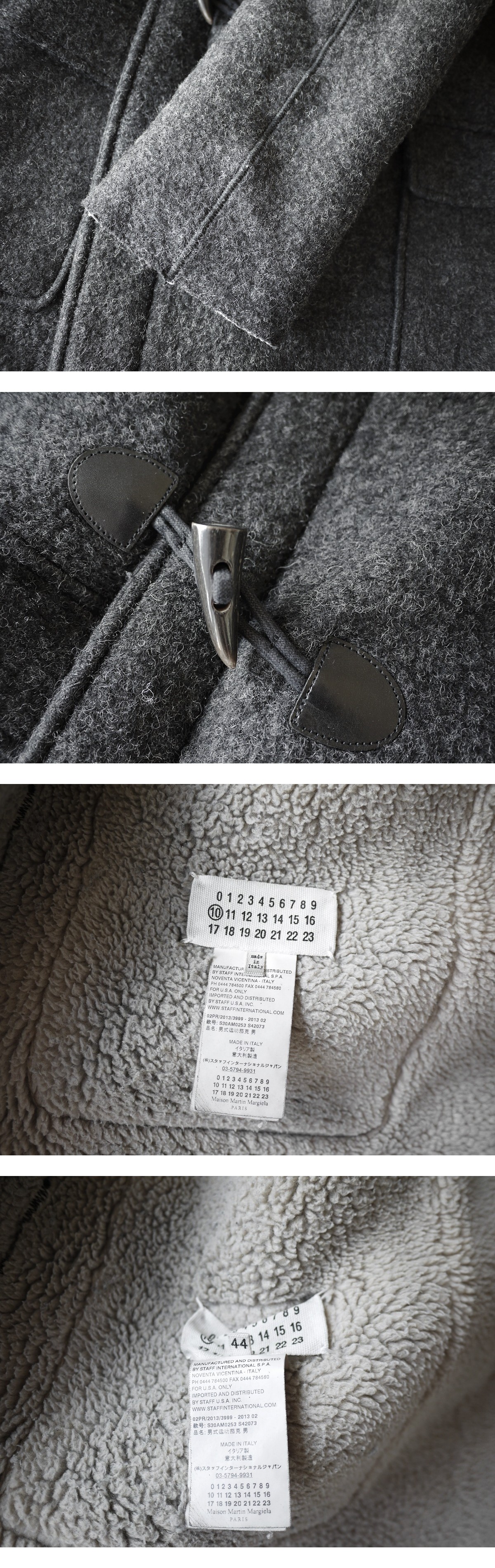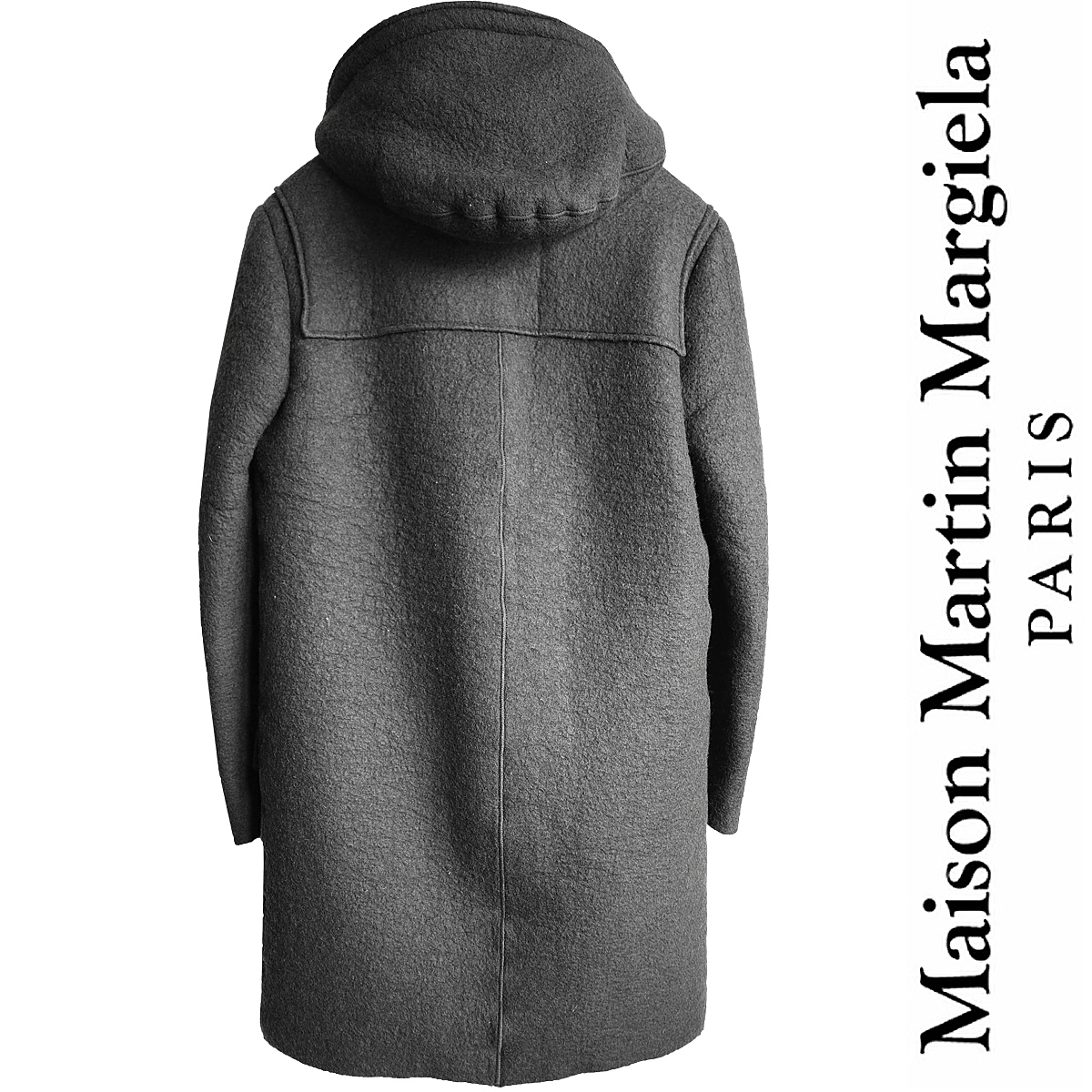 メゾンマルジェラのムートンフーデッドブレステドコートでございます。体を包み込む独特のフォルム、おさまりの良いフードのバランスが秀逸な、マルジェラらしい妥協のない服作りが感じられる完成度の高いコートです。卓越されたテーラリングによって、一切野暮ったさを感じさせない驚くほどスタイリッシュなプロポーションです。