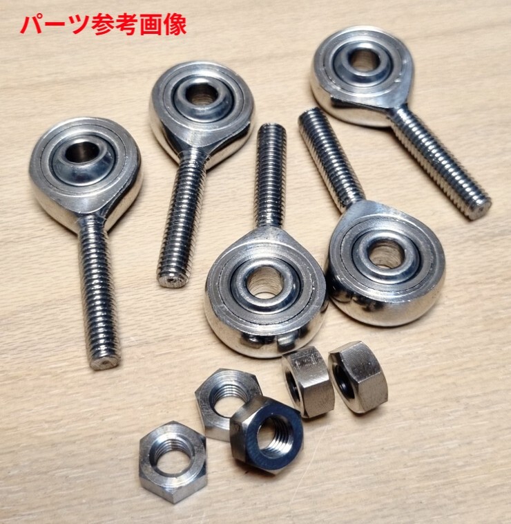 ■ 商品構成 ① SUS304 M6xP10 ロッドエンドベアリング 逆ネジ x 1個 ② チタン合金 M6xP10 ナット 逆ネジ x 1個 上記2個のパーツのセット構成です。 ※複数購入をご希望の方は、購入時に数量を指定してください。 M6ロードエンドベアリング&M6ナットセットです。