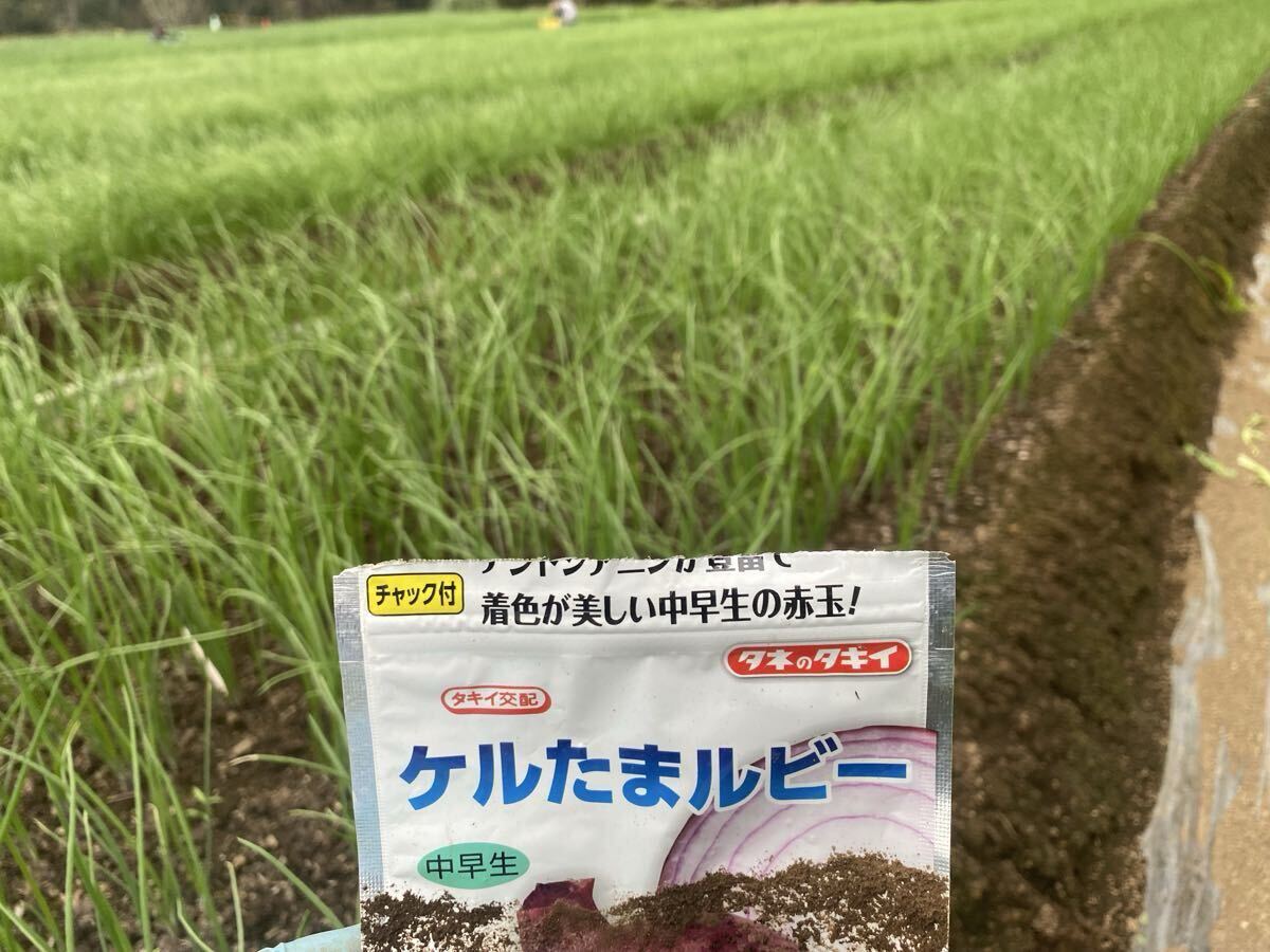 オーガニック生産の玉葱苗、もちろん多めに。2枚目の写真のように、余計な葉っぱ、根は切ります。