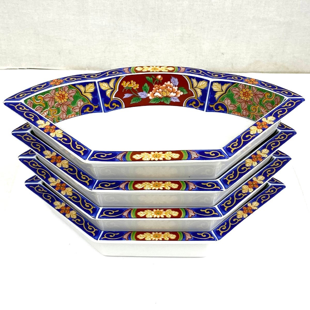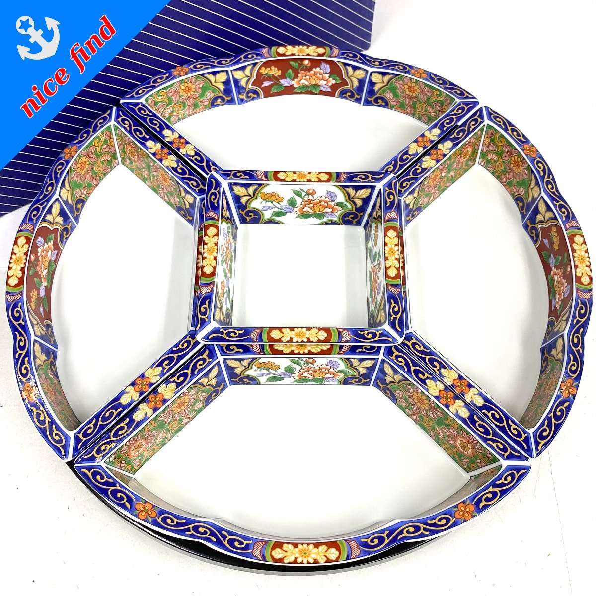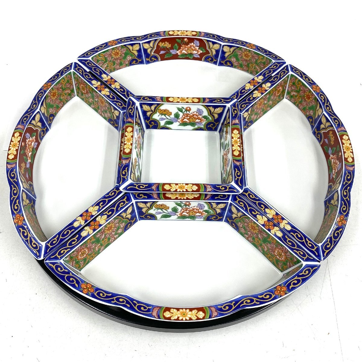◆古伊万里◆オードブル 小鉢 中鉢 角皿 盛皿 食器 色絵 花絵 陶磁器 箱付き 回転式 ターンテーブル 宴会 パーティ 料理