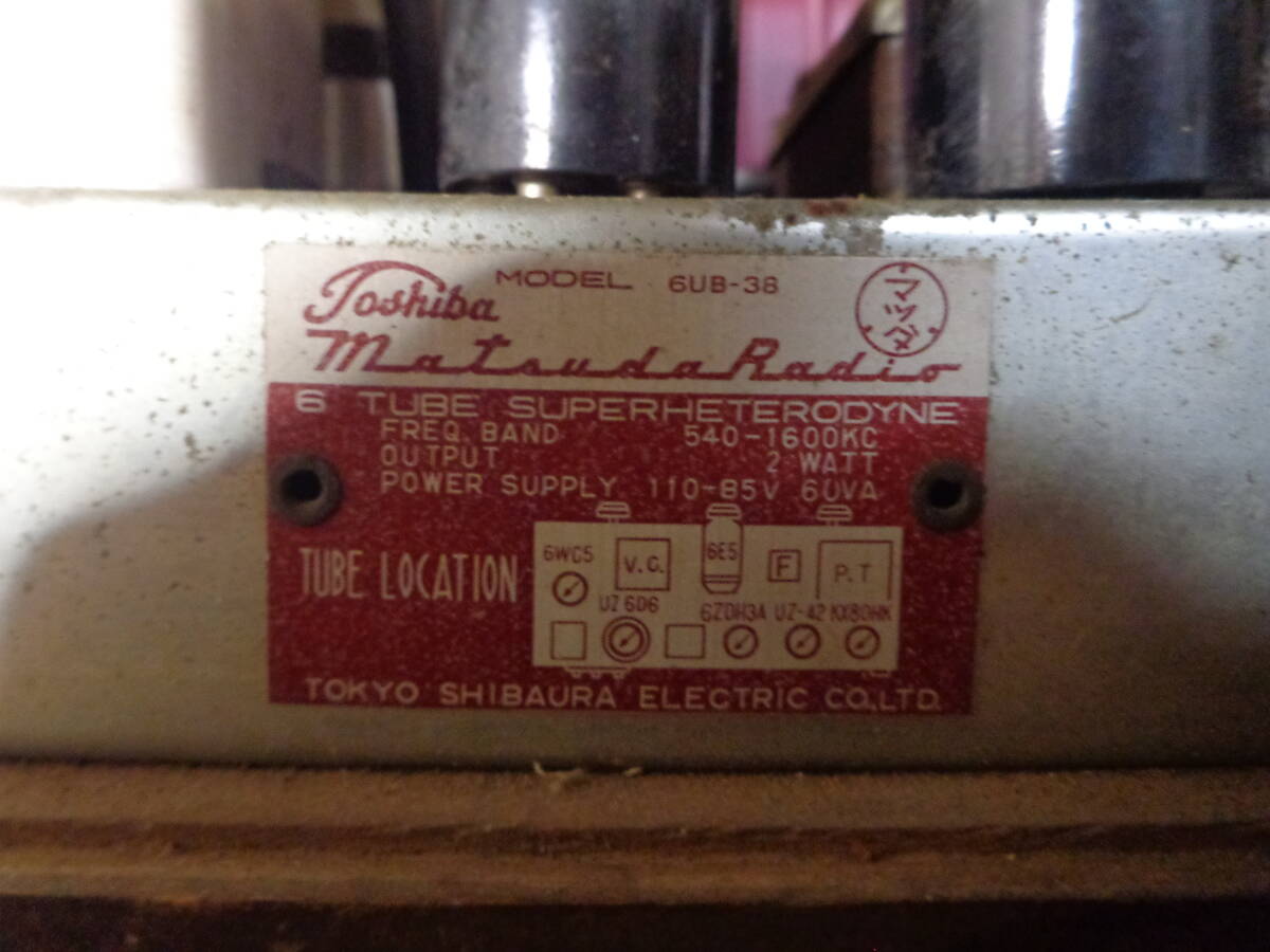| ★現状/ジャンク/昭和レトロ/東芝/真空管ラジオ/6UB-38/部品取り/レア/ヴィンテージ/希少/インテリア★ | ||