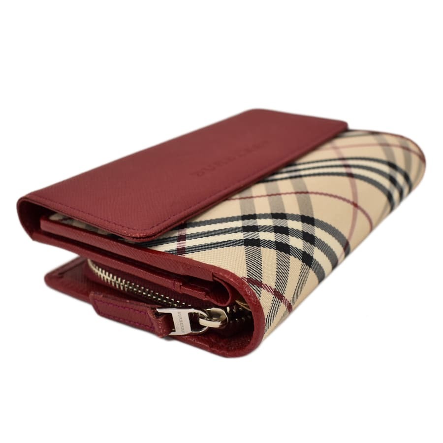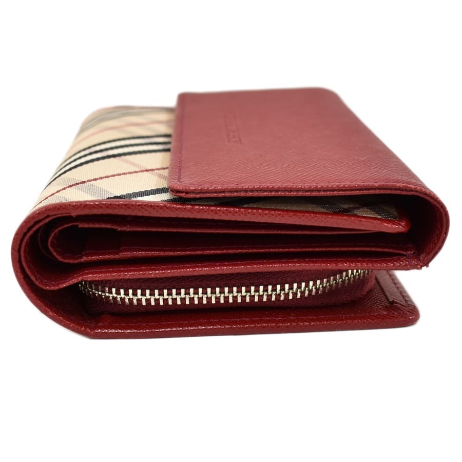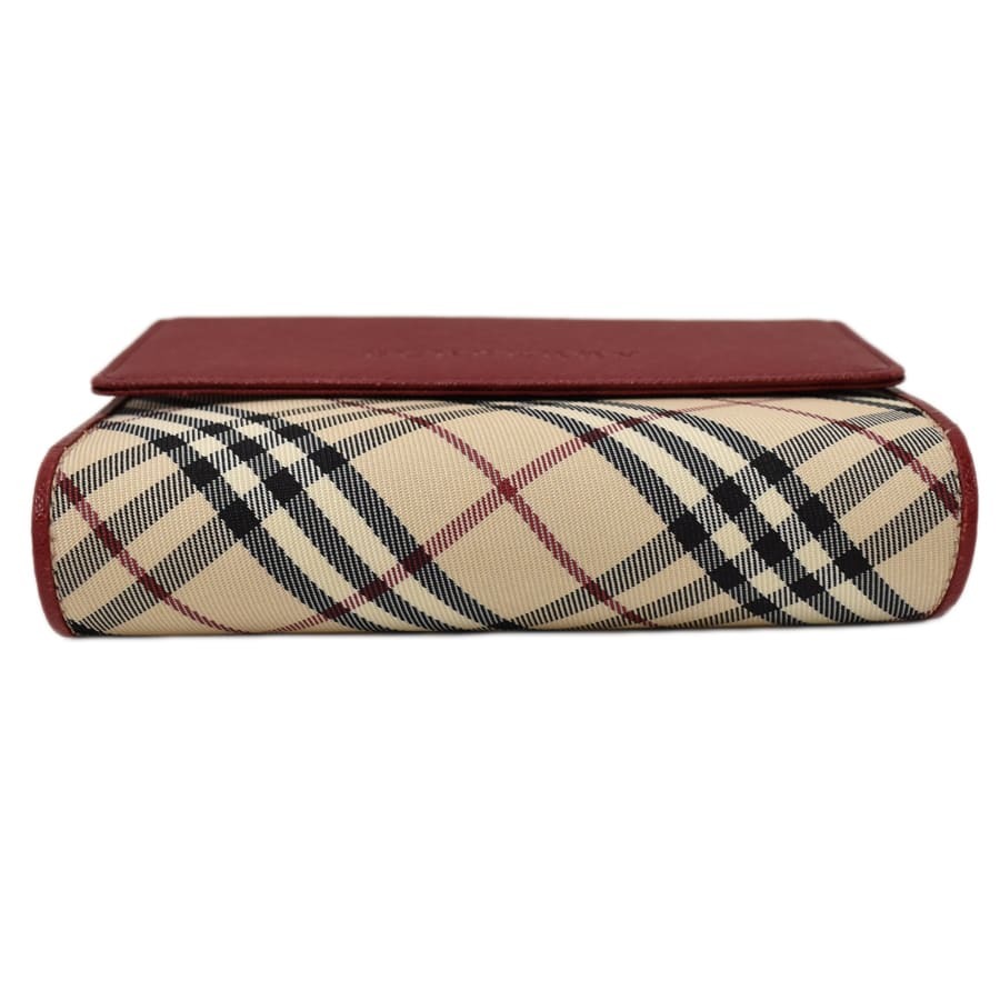 1円■バーバリー/コンパクト財布/レッド系/キャンバス×レザー/ノバチェック/レディース/BURBERRY ■E.Css.Tyb-19[中古]