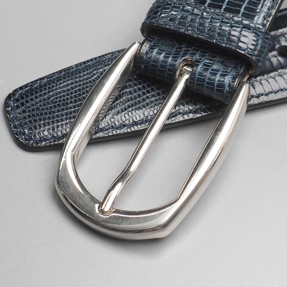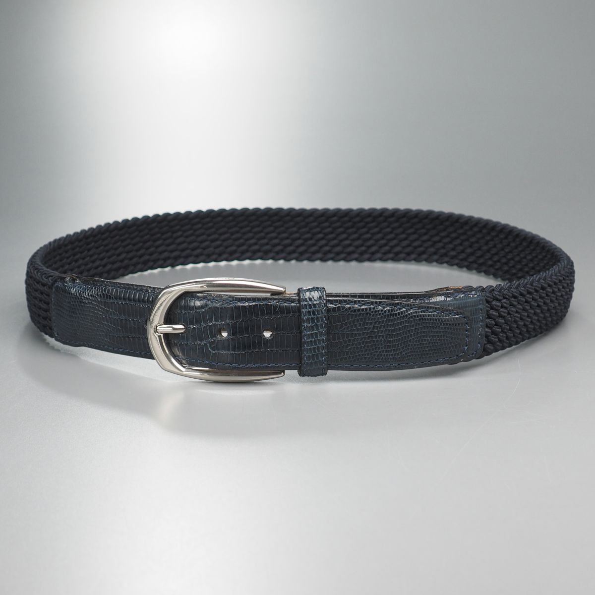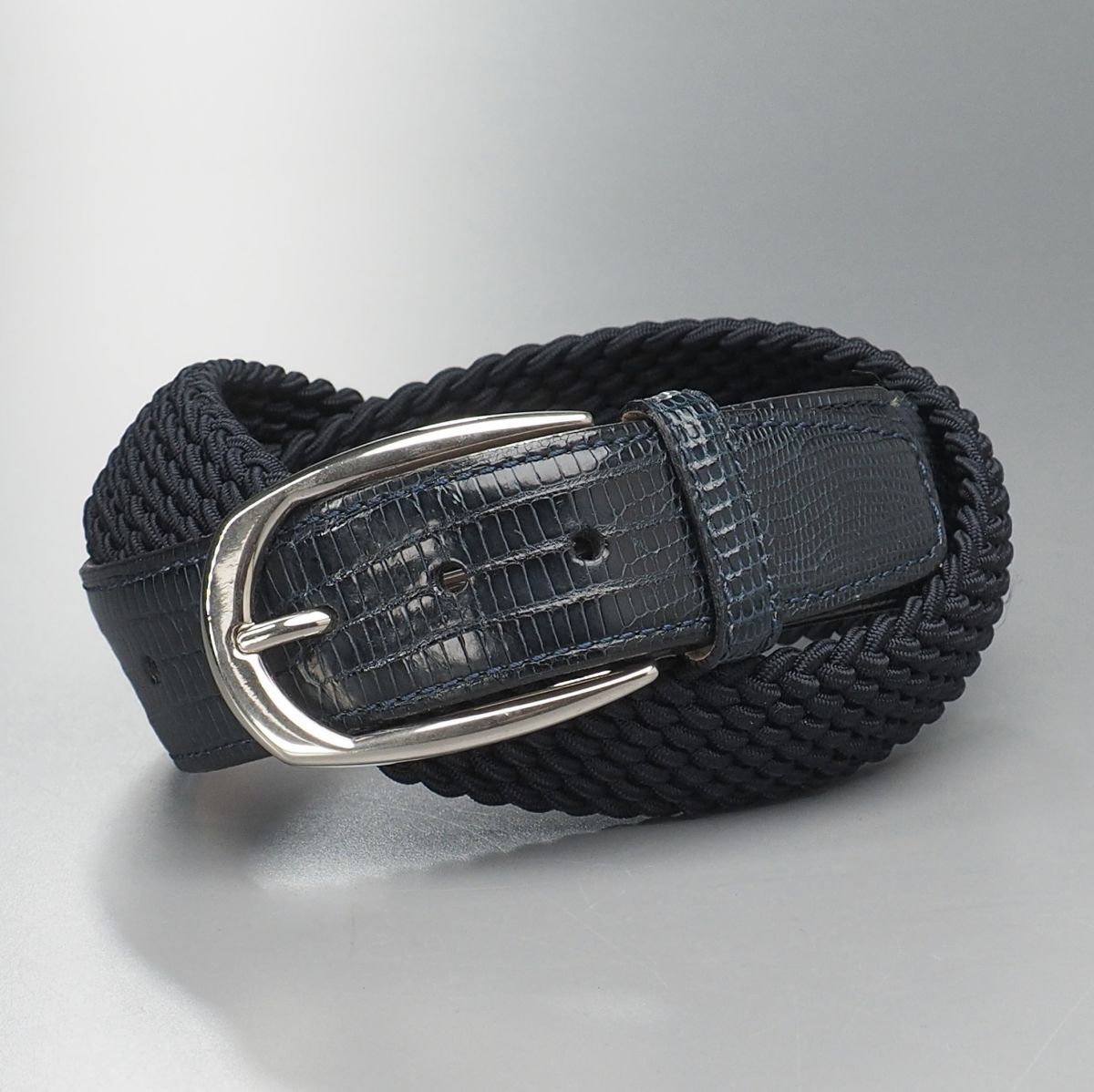 | GS5526◎Brioni ブリオーニ イタリア製 編み込み × リザードレザー トカゲ革 メンズ ベルト ネイビー 紺 サイズ85 | |||