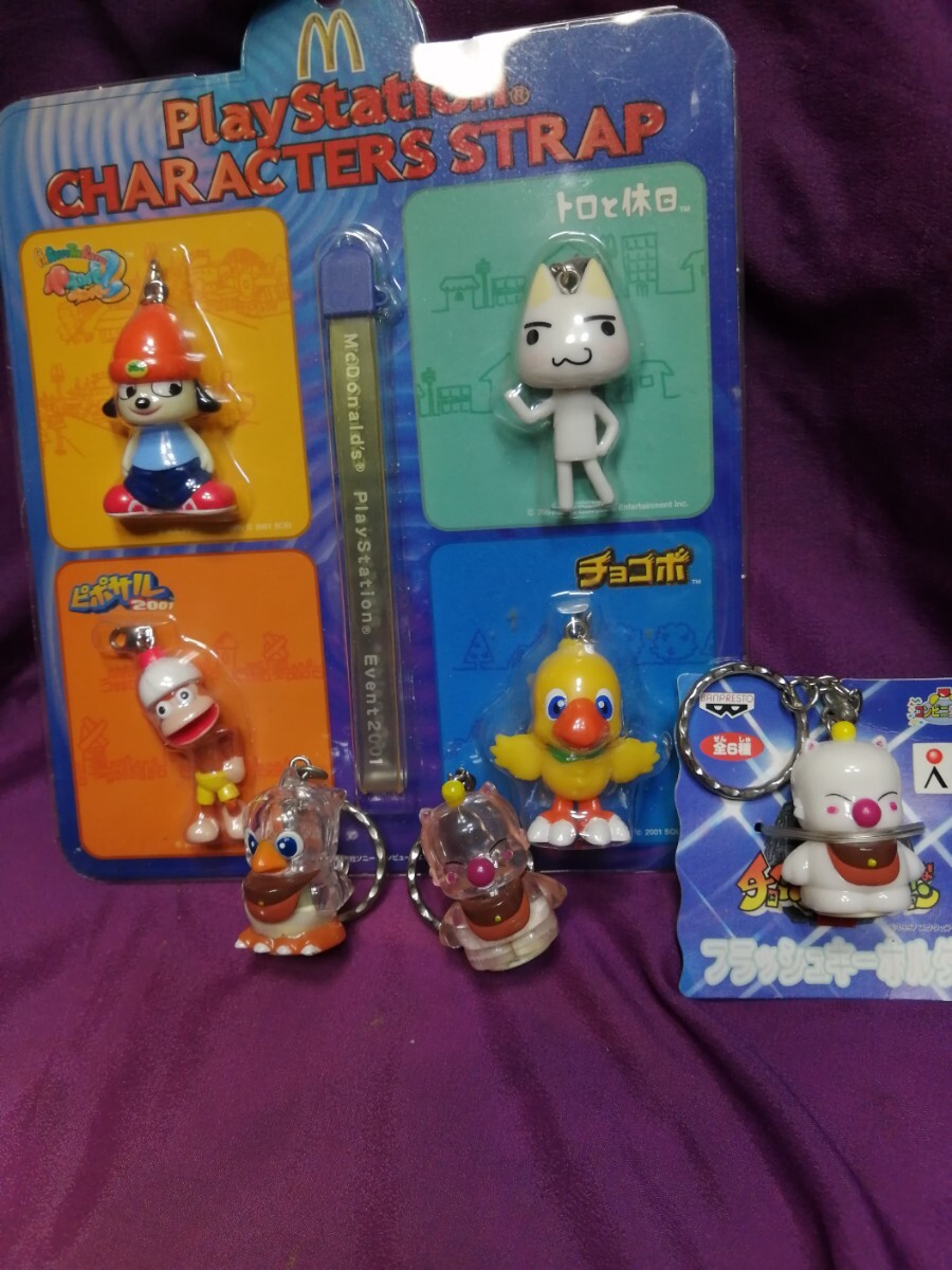 マクドナルドのおまけとチョコボとモーグリのキーホルダーです。キーホルダーは光るとなっていますが、年代物なので光らないと思います。それでも良いという方宜しくお願いします。