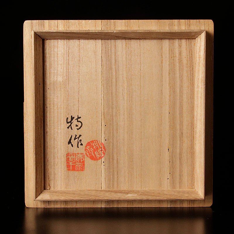 【初代徳田八十吉】 古九谷写、吉田屋写、赤絵技法などの伝統の技法を研究し独自に深厚釉を創造。門下にも、二代、三代八十吉を育てると共に浅蔵五十吉などにも指導し近代九谷上絵釉薬の第一人者とされた。氏の作品は洗練された発色技術と精密なる絵付けにより高い評価を得、現在市場においても高額にて取引がなされている。また、落款により初代、二代の作品の見分けは八と十がつながってれば初代、離れていれば二代の作品と分類できる。(箱書きの印には初代、二代とも同じ印が使用されている物もある) |