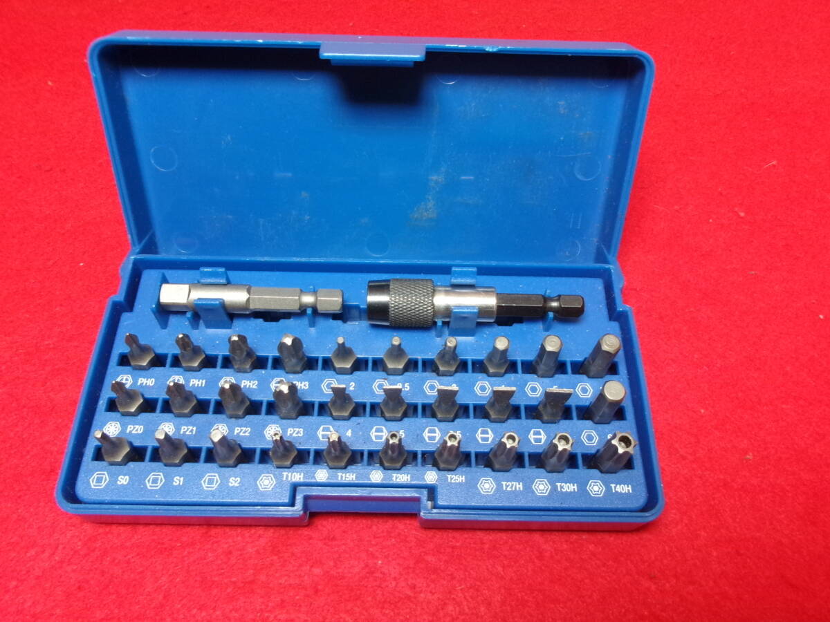 | □ブルーポイント ビット ビット 32個セット ラチェット付になります。 □パワービット PTB32K セット内容 ・フラットビット:5/32インチ、3/16インチ、7/32インチ、1/4インチ、9/32インチ ・へックスビット:3/32インチ、7/64インチ、1/8インチ、5/32インチ、3/16インチ、7/32インチ、1/4インチ ・フィリップスビット:#0、#1、#2、#3 ・POZIDRIVビット:#0、#1、#2、#3 ・トルクスいじり防止用ビット:T10、T15、T20、T25、T27、T30、T40 ・スクエアビット:#0、#1、#2 ・アダプタ:1/4インチ 6角 凸型→1/4インチ スクエア凸型、1/4インチ へックスクイックチェンジカプラー ・コードレス ドリル、スクリュードライバー との使用に適しています。1/4インチへックスシャンクビット 30個とアダプター2個が付属 ・ビットのタイプとサイズがひと目でわかる収納ケース入り(サイズ:約15cm×約7.5cm×約3cm) □フレックスヘッドビットラチェット STABIT2190 ・全長:約12.5cm □使用に伴う傷、汚れ等ありますので、完璧をお求めの方および神経質の方は入札ご遠慮ください。 | ||