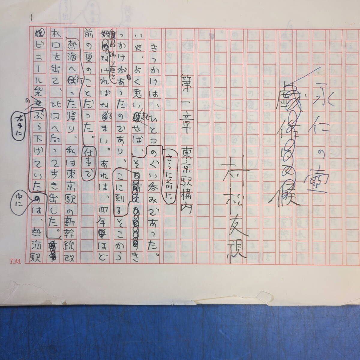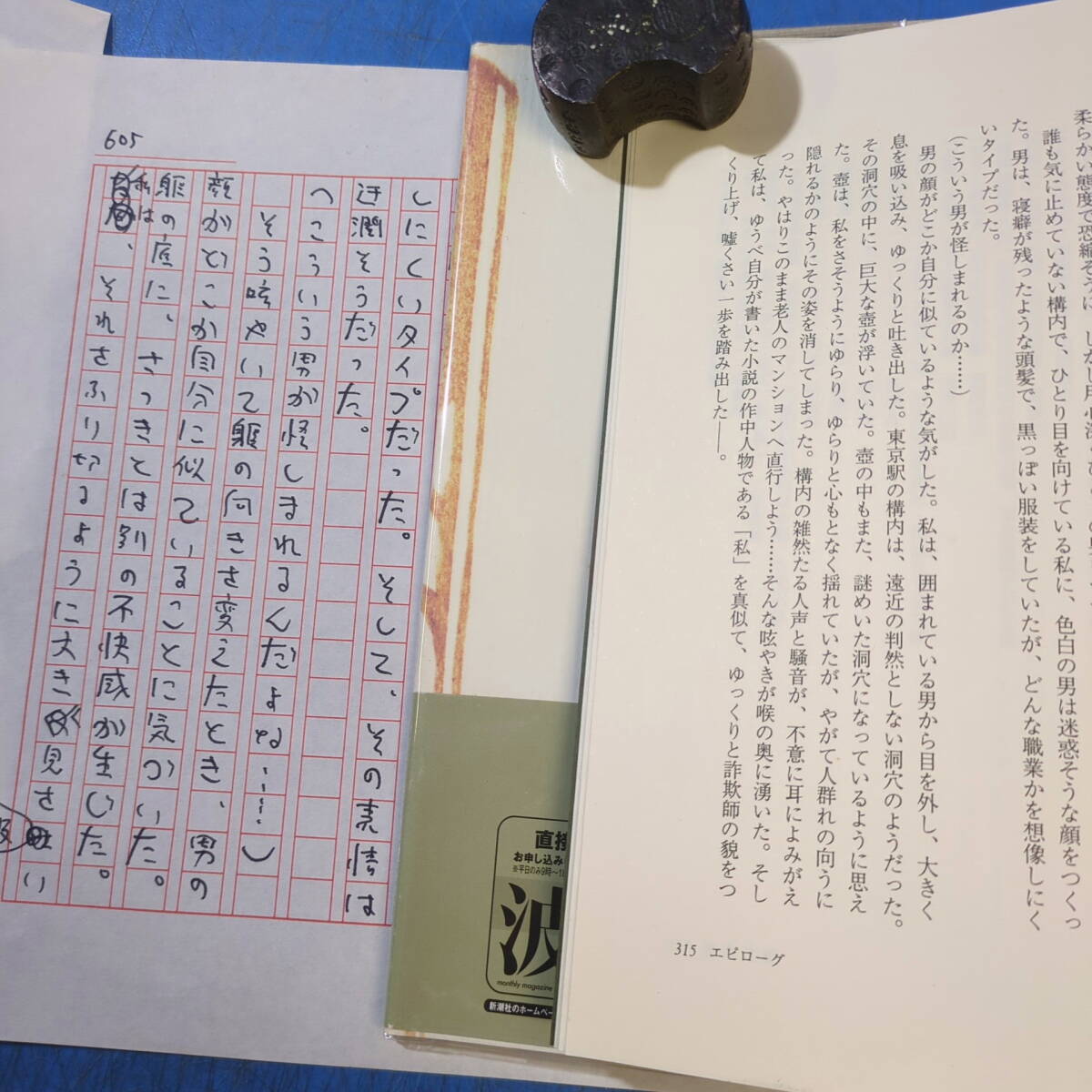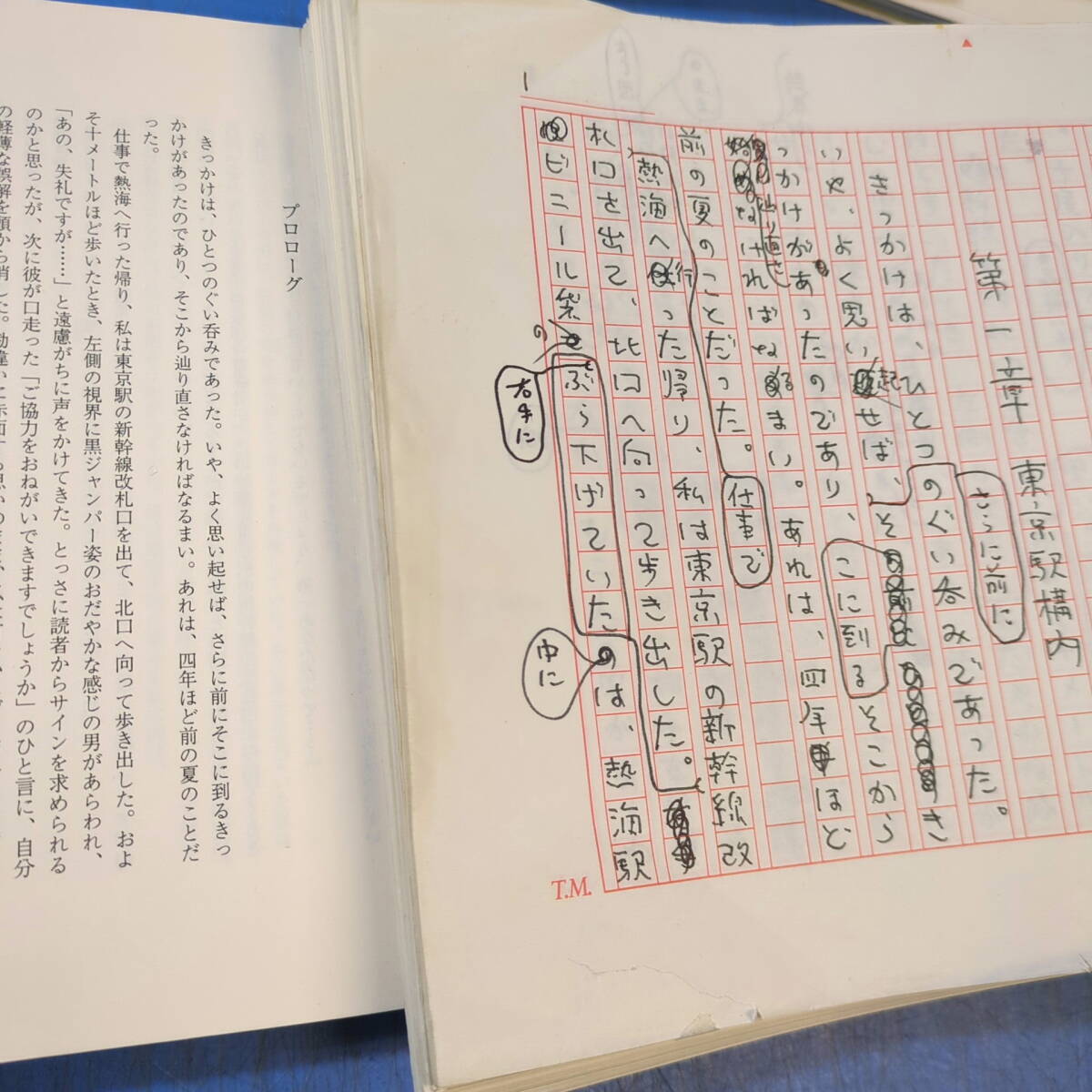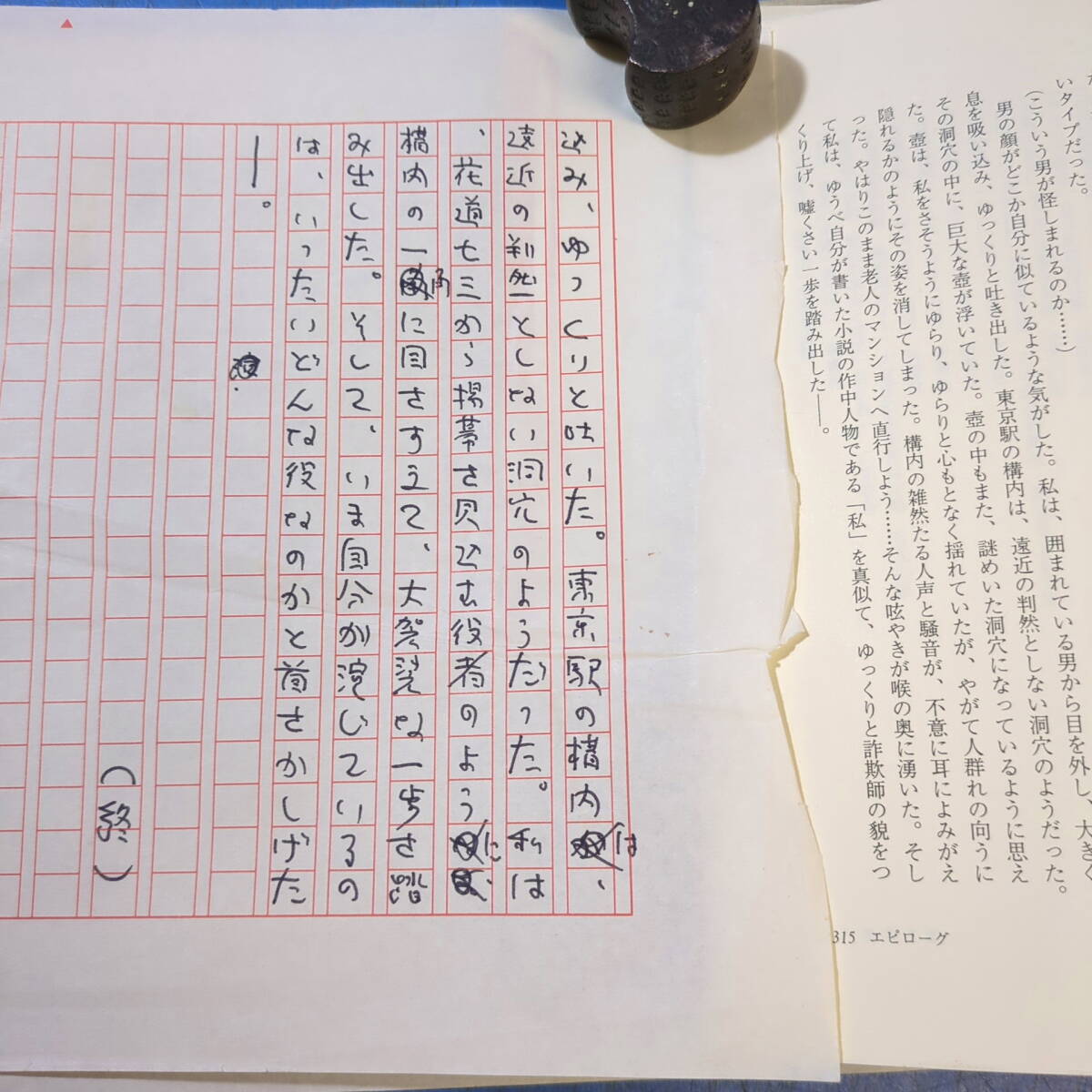 400字詰の「T.M.」名入原稿用紙602枚 20.5cm×28cm 掲載本をお付けします