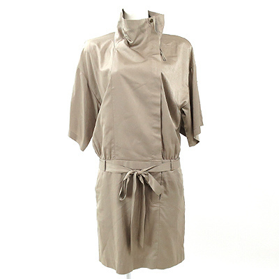 | デザイン性の高いワンピース☆スタイリッシュな着こなしに☆ サテンの光沢感が美しくサラサラとした肌触りが心地よい一品。 フロントのジップは比翼仕立てですっきりと。 ウエストのリボンを絞ることができます。気分によってシルエットを かえることができますよ。お袖もロールアップできます。 経年による色褪せが少し見られます。その他の状態は良好です。 着丈約90cm 裄丈約49cm バスト約106cm ウエスト約84cm ヒップ約92cm 【サイズ】:(S) 【素 材】:(トリアセテート57%・ポリエステル43%(裏地ポリエステル100%)) 【 色 】:(カーキ) 【程 度】:(B) 12140401-005 499 033 | ||||
