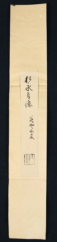 | 元亀2年京都生 里村紹巴から連歌を、九条稙通や細川幽斎から和歌を学ぶ 20歳頃に豊臣秀吉の右筆となり、木下長嘯子を友とする 慶長2年に花咲翁の称を、また俳諧宗匠の免許を許され「花の本」の号を賜る 元和元年私塾を開いて俳諧の指導に当たった 『逍遊集』『新増犬筑波集』『俳諧御傘』等の著がある 俳諧は連歌和歌への入門段階にあると考え、俗語漢語などの俳言を用いるべきと主張 「貞門」派俳諧の祖として多くの逸材を輩出した連歌師で俳諧師、松永貞徳(1571~1654/名は勝熊/別号に長頭丸,逍遊軒,延陀丸,保童坊,松友,五条の翁,明心居士など)の『花や五木塵のまがひの芥田川』句短冊 紙本(打雲金泥短冊) 未装 署名は「貞徳」 短冊裏面に古筆極札貼布 |