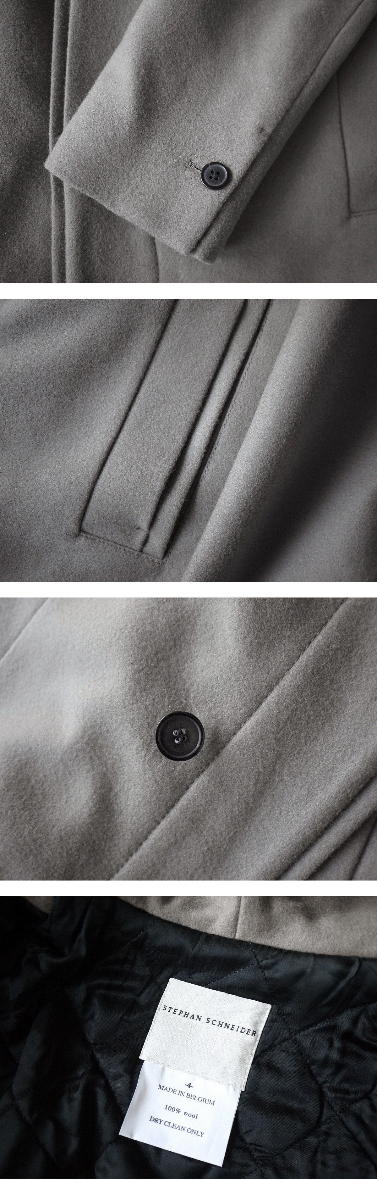 とりわけ上質な素材選びに定評のあるステファンらしい素晴らしいマテリアルで、柔らかく繊細に編み込まれたウールを使用し、とても着心地がよく、袖を通していただければその品質の良さがお分かりいただけると思います。価格以上の価値を提供するブランドと言われるだけあり、作りやサイジングのバランス感覚が大変優れたコートです。ステファンシュナイダーのコートはそのクオリティの高さから毎年とても人気のアイテムですので、この機会にぜひよろしくお願いいたします。