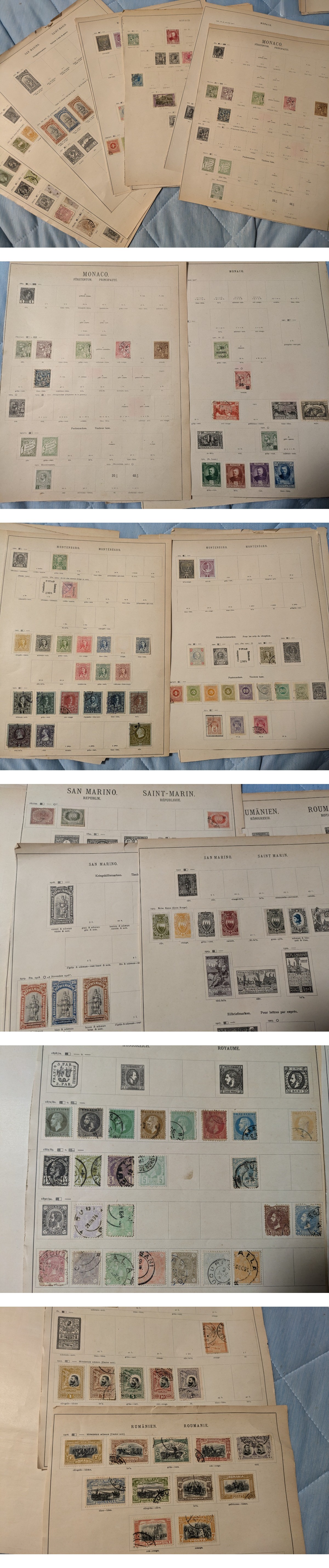 画像参照ください。ヒンジ貼りですが、貼りついてしまっている切手も多いです。