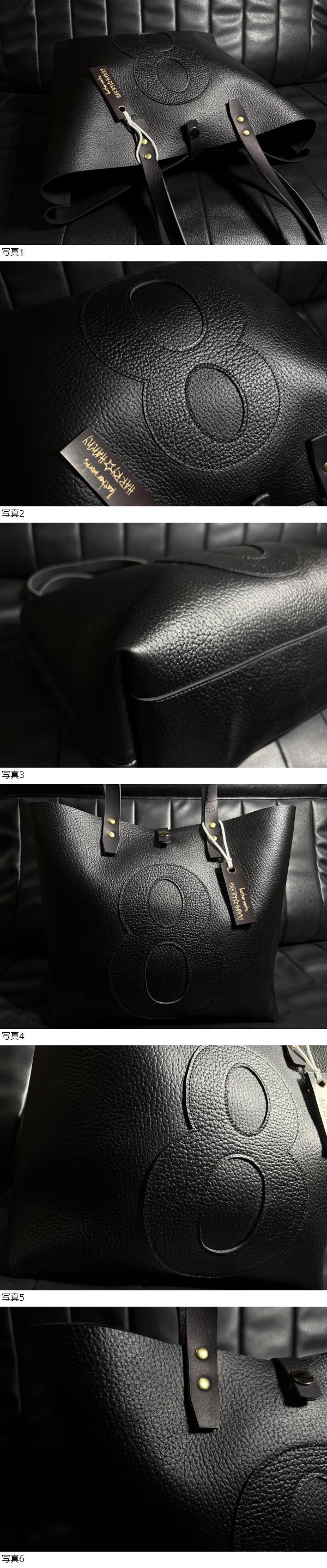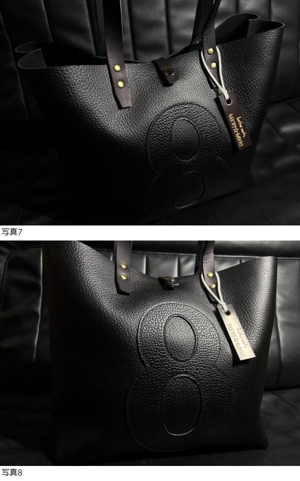 | ハンドメイド☆4☆漆黒ラギット!両面仕上げ厚革シュリンクレザー☆ナンバリング8☆男女兼用☆持手:北米産ステア A4楽々サイズ☆裏地レス | |