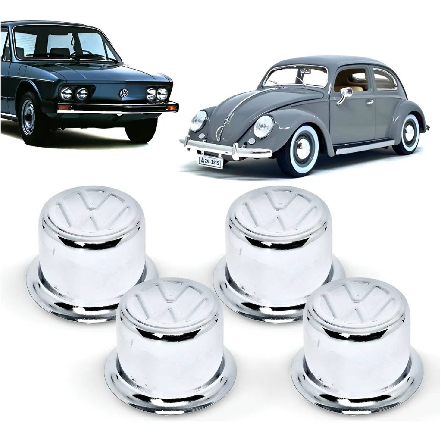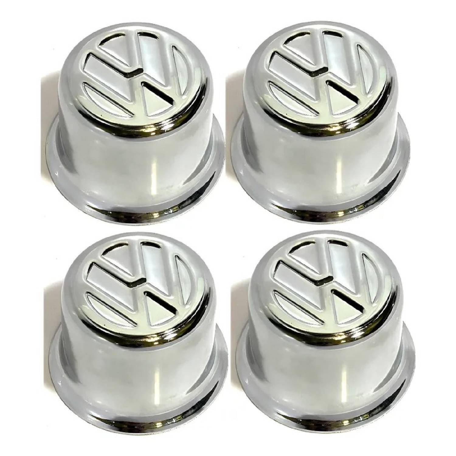 ホイールセンター 真ん中 ハブキャップ 丸型カップ ステンレススチール メッキ VWロゴ 4個セット フォルクスワーゲン ビートル T1 ビートル T2 バス T3 カルマンギア T4 ヴァリアント ブラジリア用