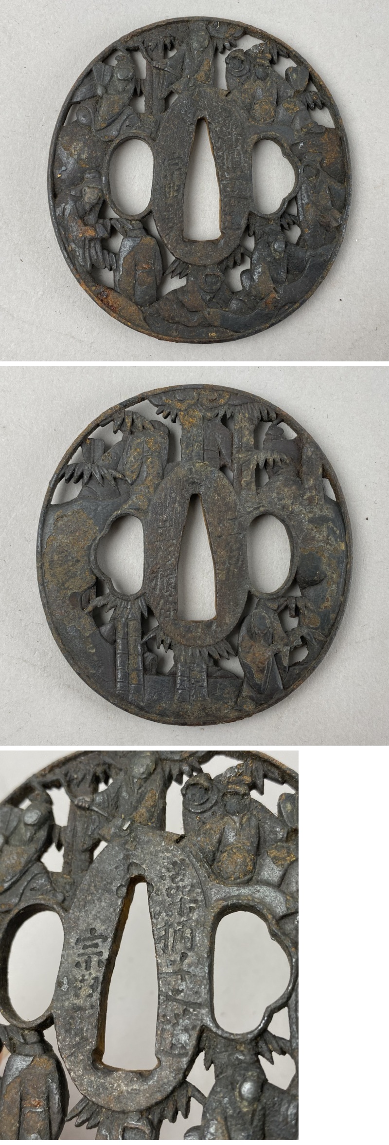 | ◇商品情報◇ | 当店の商品をご覧いただきありがとうございます!! 日本刀 拵え 鍔 切羽 はばき 柄 鞘 5種 まとめて 鮫皮 刀装具 外装 時代物 になります。 柄:約22cm 鞘:約67cm 鍔:縦 約7.3cm、横 約7cm 旧家より買い付けの際に出てきました物です。 経年による錆・変色・傷・剥がれ・汚れ等がございます。 古いお品物ですので状態などは画像を参考の上、ご検討をよろしくお願い致します。 ※目視チェックをしていますが、古物品の場合、見落としや細かな擦れ・薄汚れなどがある場合もございますので予め画像をご確認の上でご入札をお願いいたします。 商品のトップ画像端に写っている茶筅はサイズ比較用の備品ですので付属はしません 当店は信州上田に店舗を構え、県内の旧家や蔵より買い付けの際に出てきました物を出品 しております。 タイトルや文章など当店主観の判断ですので見識の相違などございませぬ様、画像でご確認くださいませ。 当時物や古物品では時代による劣化や痛みなど、何らかの瑕疵はあるものとしてご承知願います。 画像による判別が難しい場合や、画像にない箇所などで気になる場合は事前にご質問等でお問い合わせ下さい。 ご入札時には画像を良くご確認頂き、自己の責任のもとでオークションにご参加下さい。 | ||||||||||||||||||||||||||||||