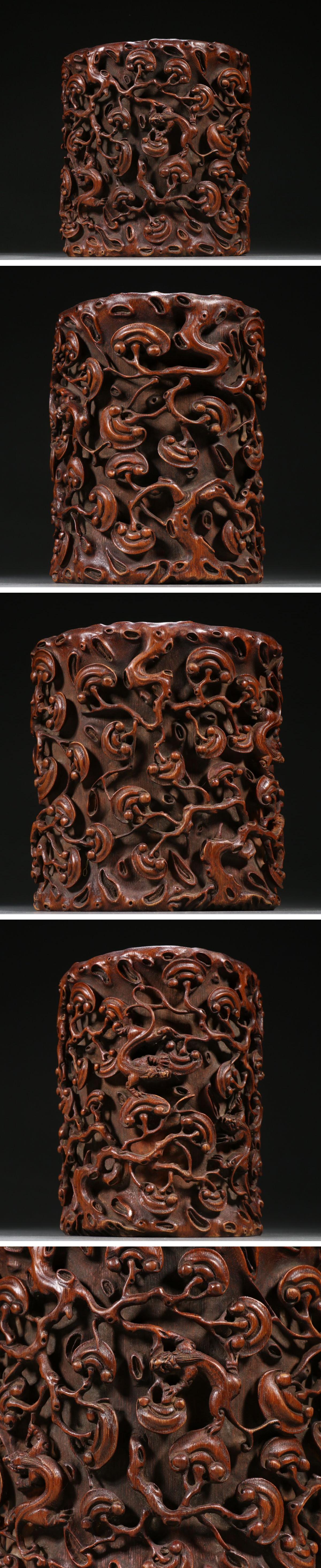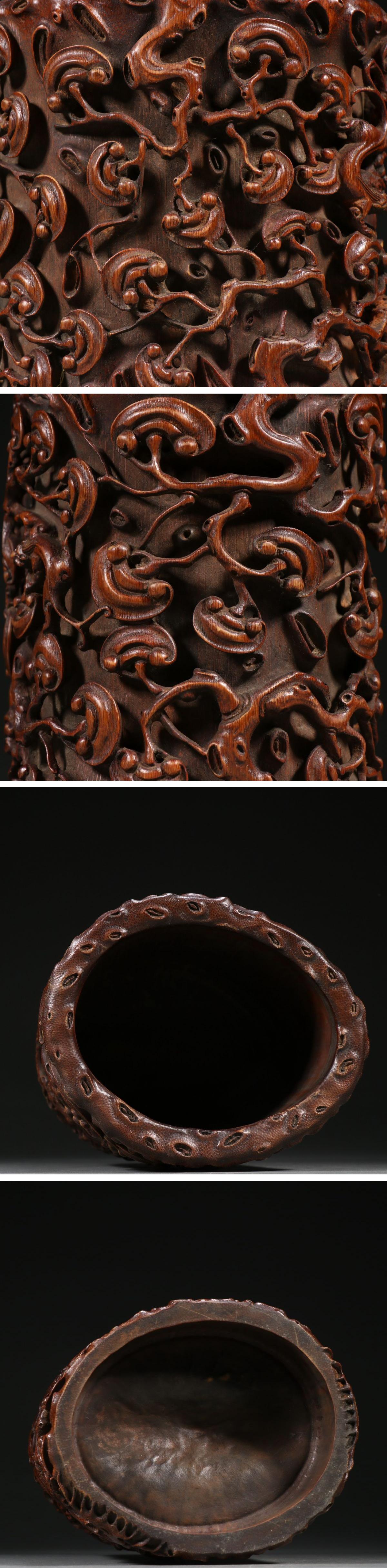 【清】関西某オークション購入 中国伝来 清時代物 竹彫り 高浮彫龍紋筆入 当時物 時代コレクション7L12-AM16