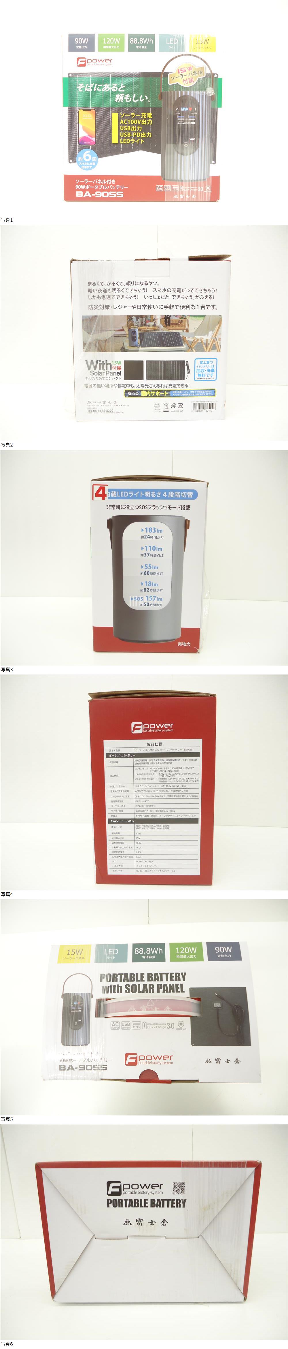 | 3630 アウトドア用品祭 未使用 富士倉 ソーラーパネル付き 90W ポータブルバッテリー BA-90SS ライト 充電器 | ||||