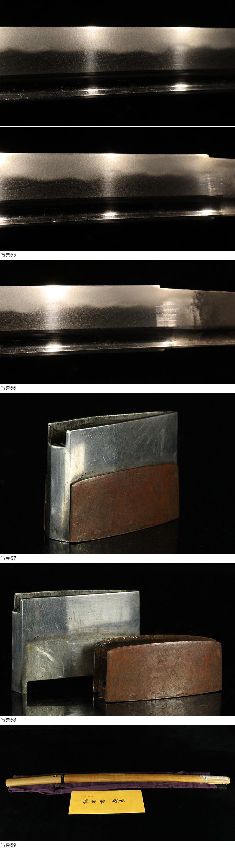| ■刀剣のサイズ表示について 元幅・・・焼出し付近を測定しております 先幅・・・横手筋付近を測定しております 元重ね・・・焼出し付近の厚みを測定しております 先重ね・・・横手付近の厚みを測定しております (多少の誤差はご容赦ねがいます) ■銃砲類のサイズ表示について 全長・・・銃身先から台木尻までを測定しております 銃身・・・台木を除いて金属部分を測定しております (多少の誤差はご容赦ねがいます) 当社が出品する刀剣類は、入手した時の状態のまま出品しております。 ハバキ、小道具等も当社で調整したり付け替えたりはしておりませんので、合わせではないかというクレームは一切受け付けません。 刀身の疵も隠すことなく載せておりますので写真をよくご覧になってご入札ください。 疵に関して、説明がない等のクレームは一切受け付けません。 写真ではわかりにくい部分は質問欄やお電話でお問い合わせください。 但し、説明欄に表記のない刃切れに関してのみ返品やご相談に応じます。 ※ご落札しご購入されお手元に届いてから20日以内に 登録証に記載されている各都道府県の教育委員会にご連絡し 登録証の所有者変更を必ず行ってください | |||