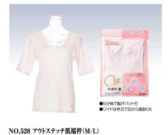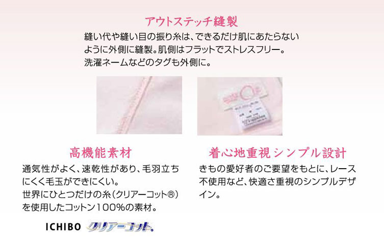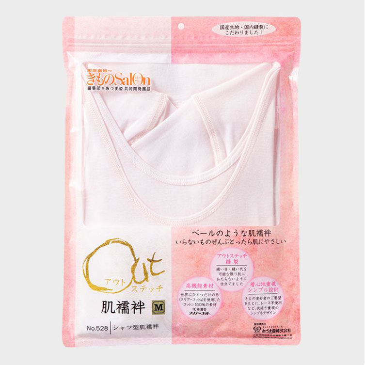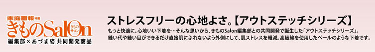 きものサロン編集部×あづま姿共同開発商品 【 アウトステッチ肌襦袢 】 ●5分袖で脇汗パッド付! ●ワイドな襟元で、足から着脱OK♪ ストレスフリーの心地よさ。【アウトステッチシリーズ】 もっと快適に、心地いい下着を・・・ そんな思いから、きものSalon編集部との共同開発で誕生した「アウトステッチシリーズ」 縫い代や縫い目ができるだけ直接肌にふれないよう外側にして、肌ストレスを軽減 高級綿を使用したベールのような下着です。 | ||||||||||||