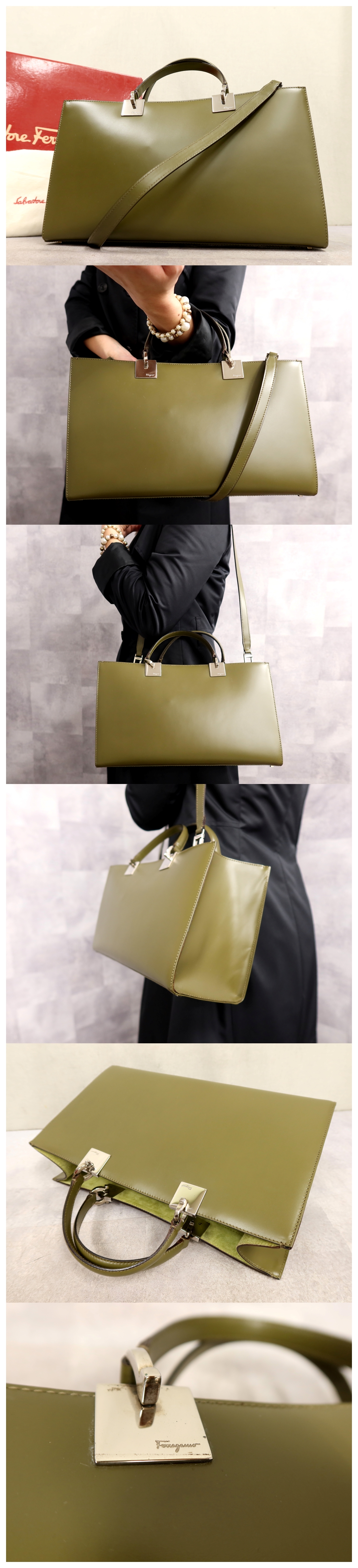 ●超美品●Salvatore Ferragamo フェラガモ●ロゴ金具●スエード カーフ レザー 本革●2way ハンド バッグ●グリーン系●SV金具●Js64704 [浏览原始页面]