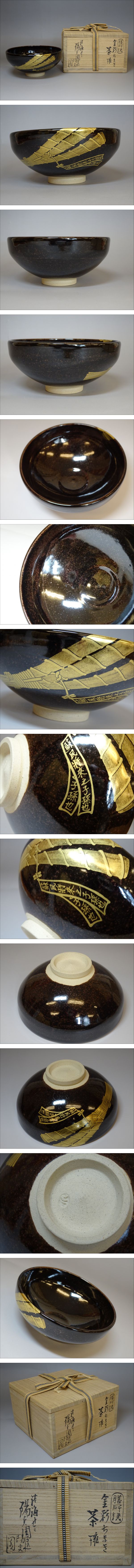 【涼風庵】岩崎新定 淡海ぜぜ 陽炎園 膳所焼 金彩ちまき茶碗 共箱 粽茶碗 美品 | |||