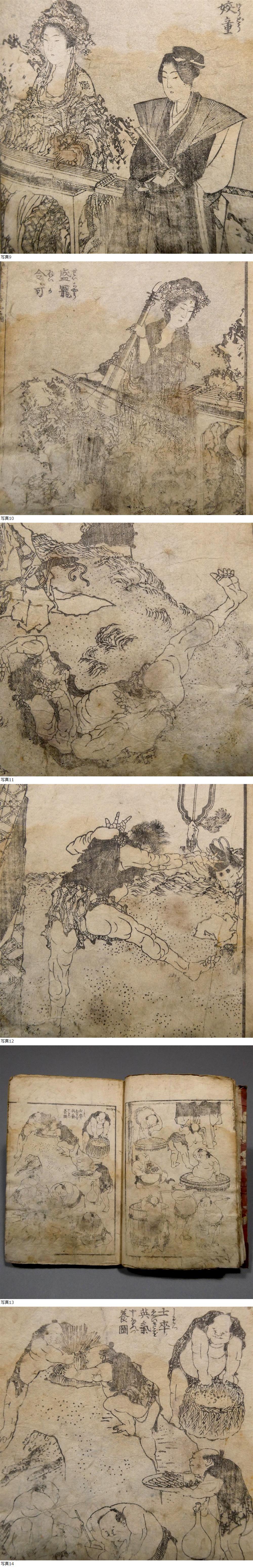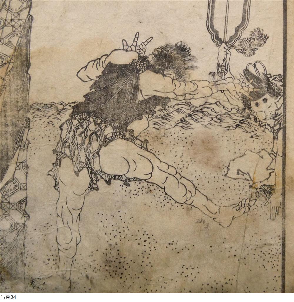 ■ 葛飾北斎 江戸時代 木版和本 「北斎漫画」九編 妖怪画 ヤマトタケル 野見宿禰 角力 鬼 龍宮城 富士洞窟 ■