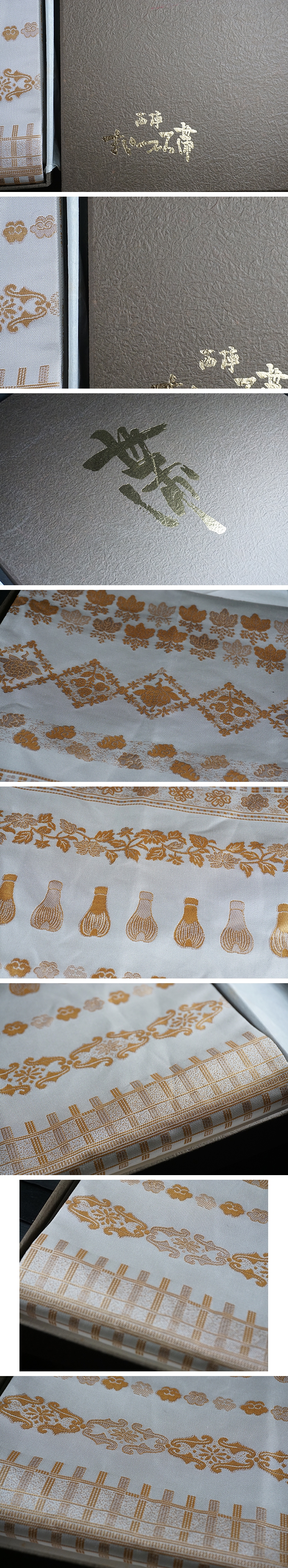 | E-040■西陣織 まいづる帯 白地に金色 紙箱入 和装着物 | ||