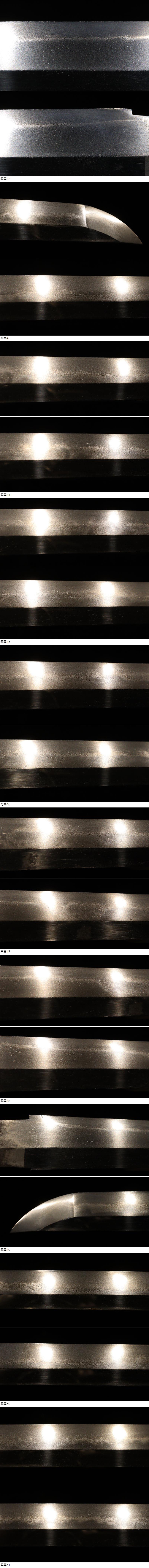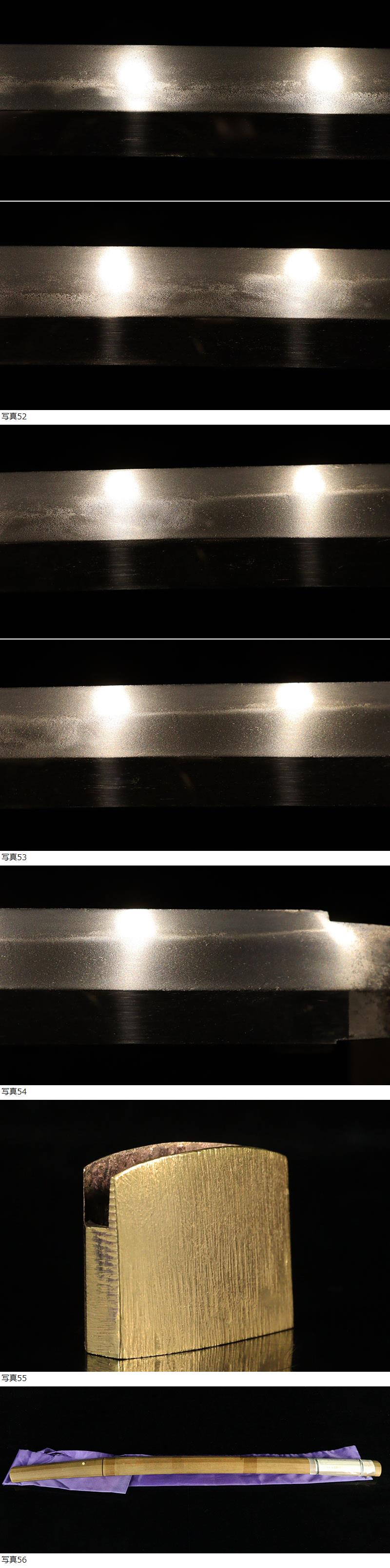 | ■刀剣のサイズ表示について 元幅・・・焼出し付近を測定しております 先幅・・・横手筋付近を測定しております 元重ね・・・焼出し付近の厚みを測定しております 先重ね・・・横手付近の厚みを測定しております (多少の誤差はご容赦ねがいます) ■銃砲類のサイズ表示について 全長・・・銃身先から台木尻までを測定しております 銃身・・・台木を除いて金属部分を測定しております (多少の誤差はご容赦ねがいます) 当社が出品する刀剣類は、入手した時の状態のまま出品しております。 ハバキ、小道具等も当社で調整したり付け替えたりはしておりませんので、合わせではないかというクレームは一切受け付けません。 刀身の疵も隠すことなく載せておりますので写真をよくご覧になってご入札ください。 疵に関して、説明がない等のクレームは一切受け付けません。 写真ではわかりにくい部分は質問欄やお電話でお問い合わせください。 但し、説明欄に表記のない刃切れに関してのみ返品やご相談に応じます。 ※ご落札しご購入されお手元に届いてから20日以内に 登録証に記載されている各都道府県の教育委員会にご連絡し 登録証の所有者変更を必ず行ってください | |||