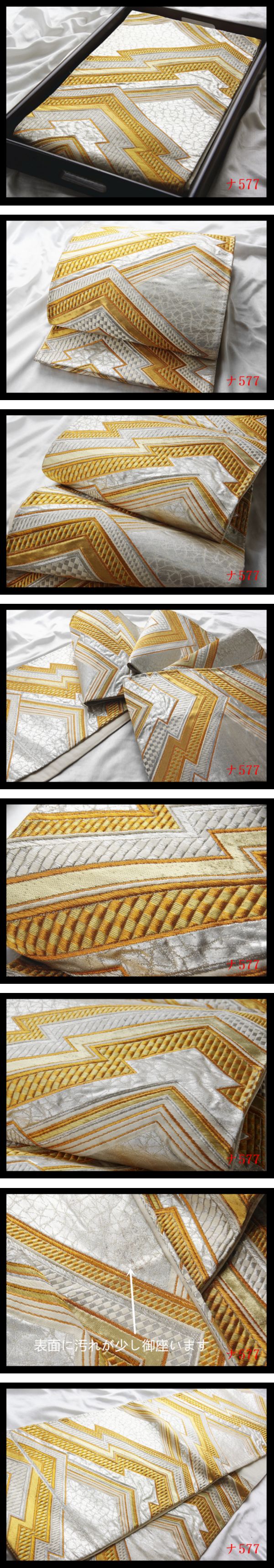 商品寸法 ーーーーーーーーーーーーーーーーー ★商品種類:袋帯 ★素材:正絹 純金糸 木箱等付属品なし ★寸法:長さ約408cm 幅約31cm ★現物状態:中古 数回締め 表面、裏面に汚れシミが御座いますが、あまり目立たず、まだまだ着用頂けます、着用時は良い状態で感覚には個人差がございます、あまり細かい事を気にしない方の入札をお願い致します。