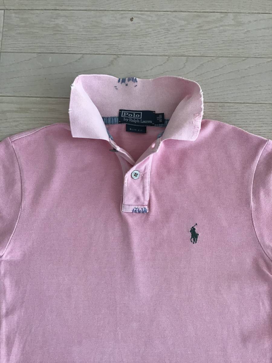 美品 ラルフローレン メンズピンクダメージ加工ポロシャツXSです