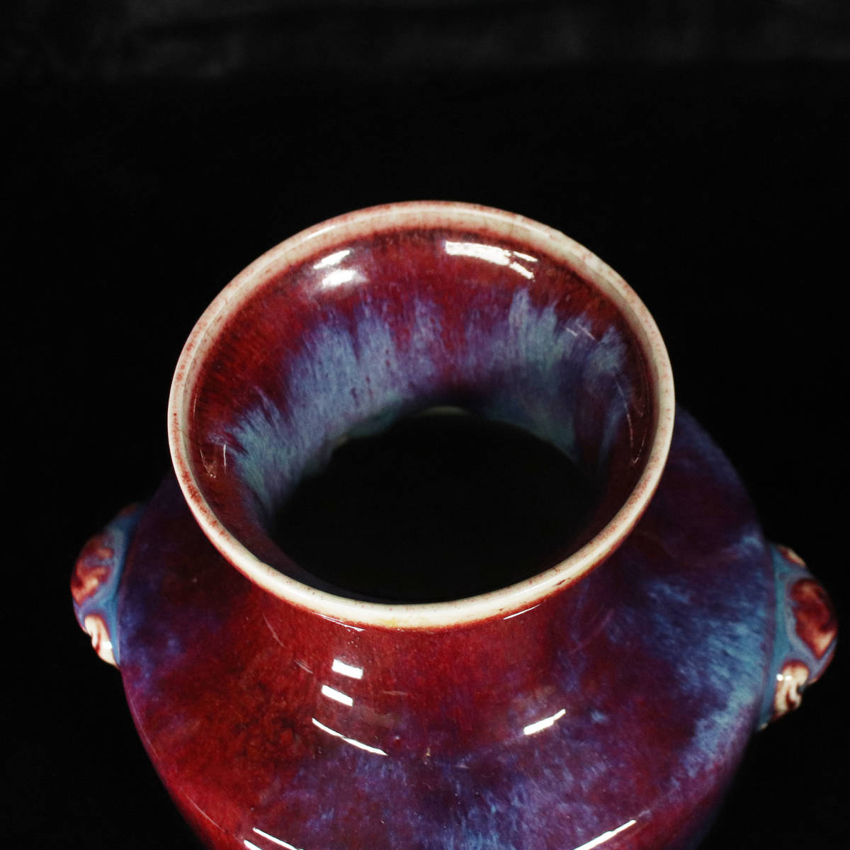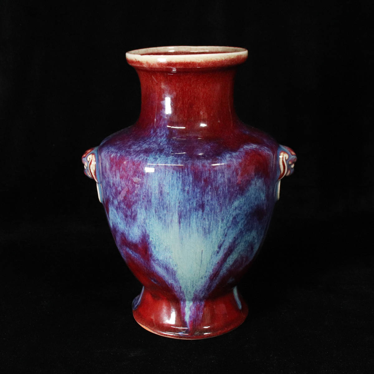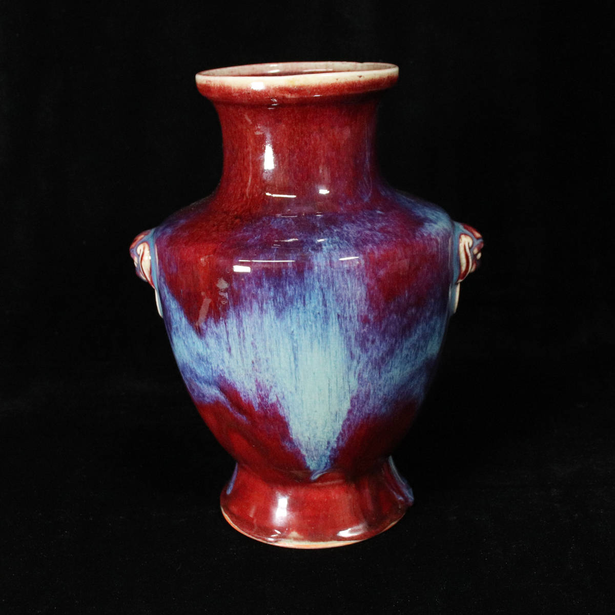 *■ 中国古陶磁 ■ 清代中期 均窯釉 獣耳付 花器 <230217018>*