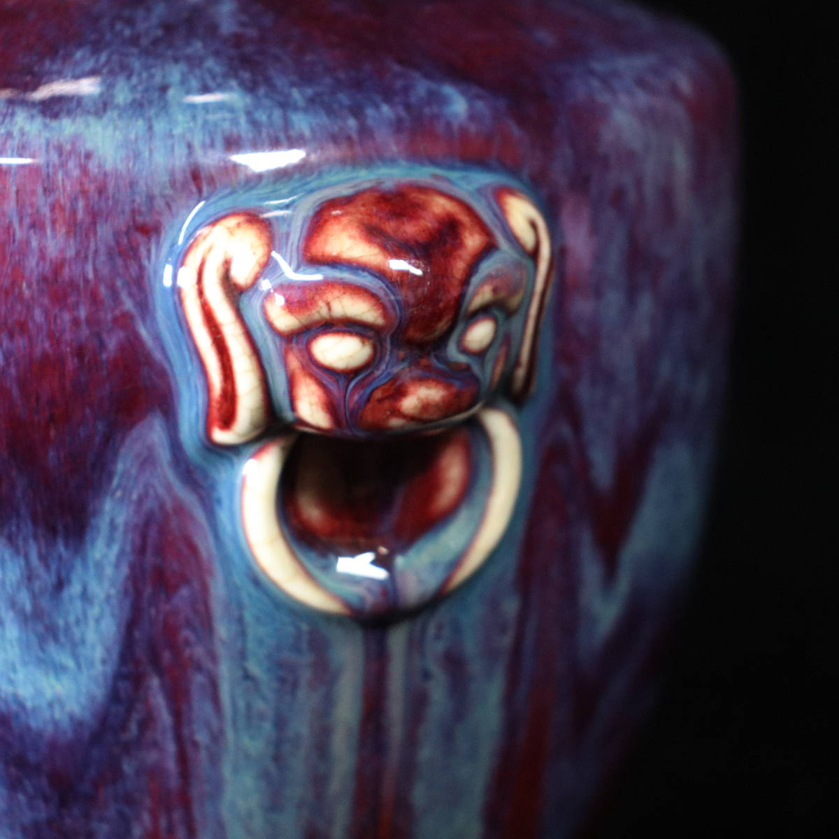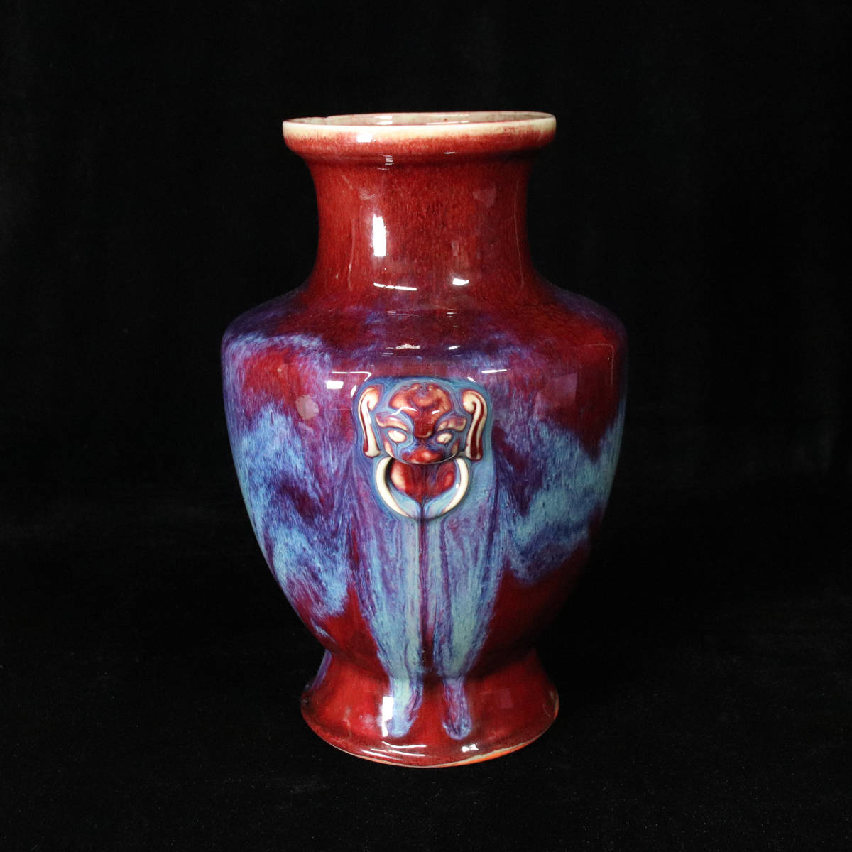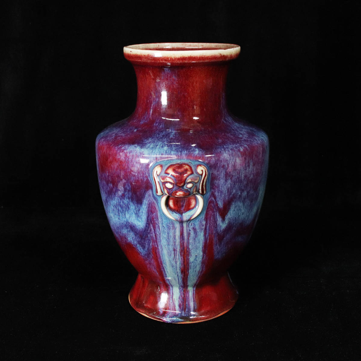 *■ 中国古陶磁 ■ 清代中期 均窯釉 獣耳付 花器 <230217018>*