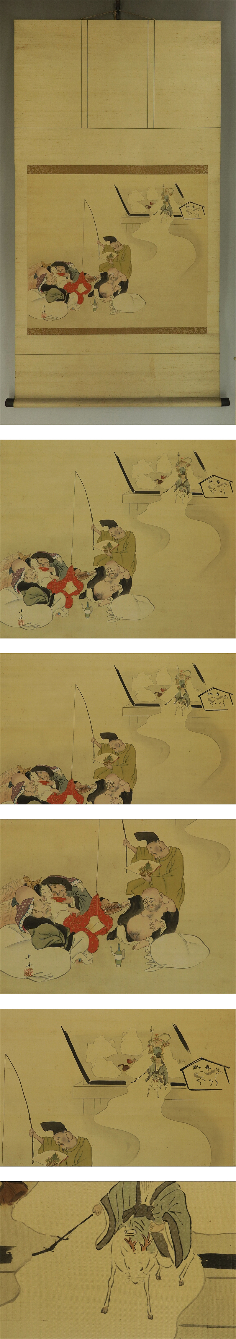 | №2210206【肉筆】古画【七福神】◆絹本◆合箱◆掛軸 | |