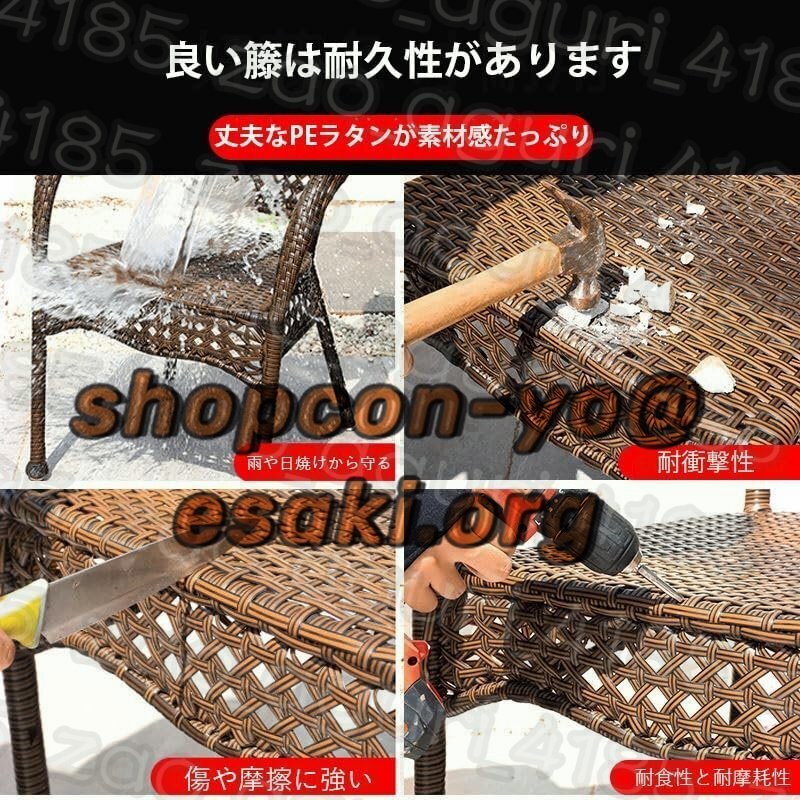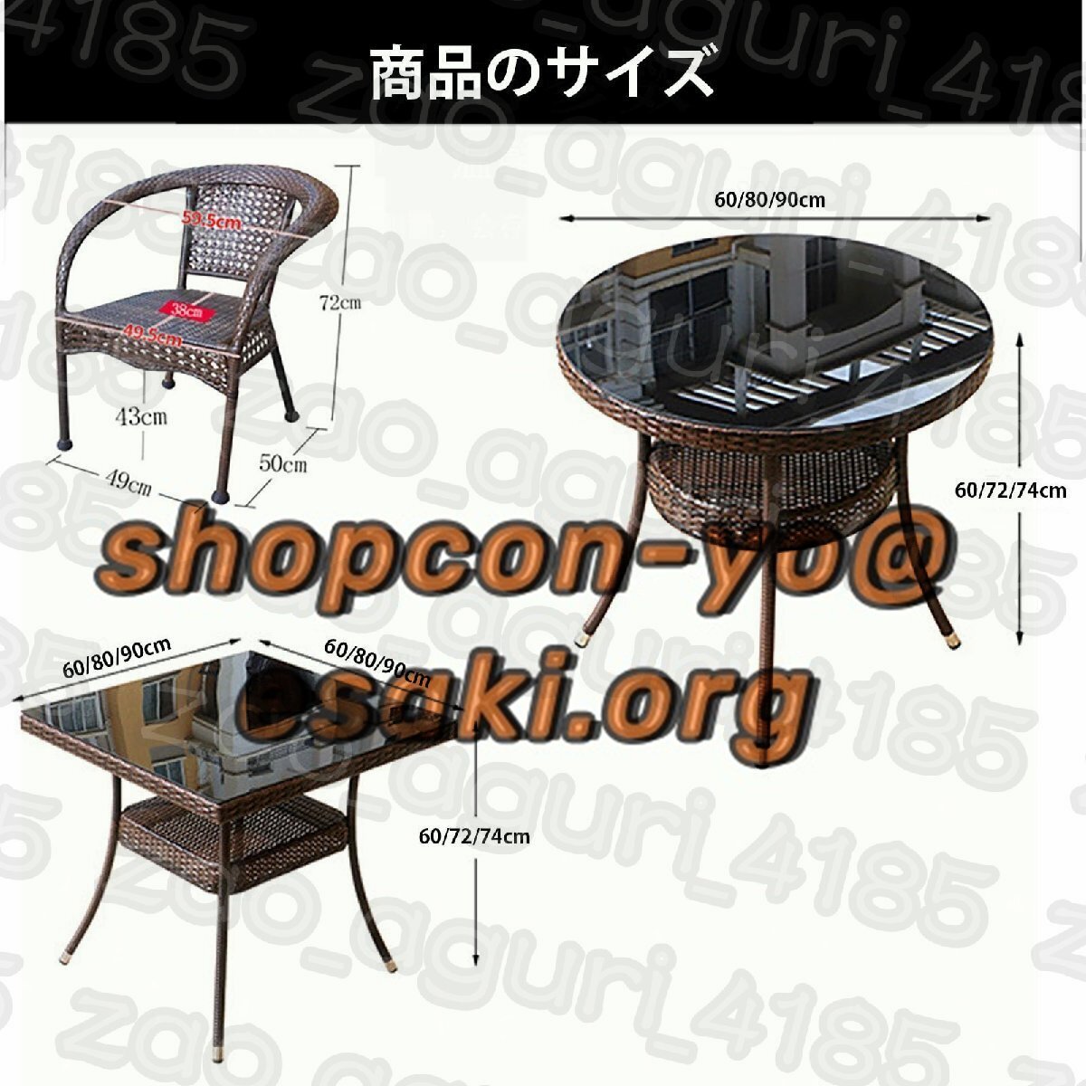 製品詳細:製品名: パティオテーブルと椅子の組み合わせ製品仕様:テーブル:直径80×高さ72cm/直径60×高さ60cm/直径90×高さ74cm60*60*60cm/80*80*72cm/90*90*74椅子: 49*50*72cm製品材質:金属フレーム+強化ガラス製品技術:籐織り適用スペース:テラス、中庭、カフェ、書店、その他の場所。特徴:1.亜鉛メッキ鋼フレーム、優れた耐荷重性。2.二層設計、より多くの収納スペース。3. 強化ガラス製テーブルトップ、防雨、耐日光。4.籐織りの職人技、ファッショナブルで魅力的。5.耐摩耗性があり、傷がつきにくいので、より長く使用できます。6.滑り止めフットパッドは簡単には動きません。7.幅広い用途・シーンに対応。5点のガーデン家具セットのテーブルトップは強化ガラスで作られており、籐の織り技術と組み合わせて新鮮な感覚を生み出し、あなたの環境をファッションでいっぱいにします。二重層のデザインはより多くの収納スペースを生み出し、より実用的です。滑り止めのフットパッドが付いているので、使用中に揺れやすく、より安全に使用できます。 デスクトップは強化ガラスで作られており、より強くて耐摩耗性があります。誤って破損しても鋭利な破片が発生せず、より安全に使用できます。アップグレードされた厚みのある亜鉛メッキ鋼管。素材はマットスプレーペイントで作られており、保護性と美しさを兼ね備え、長期間の使用に便利です。 椅子は籐製織技術を採用し、耐摩耗性、防水性、耐衝撃性、耐火性があり、硬度が高く、傷がつきにくく、変形しにくい丈夫なPE籐を使用しています。 108°の背もたれは腰への圧力を軽減し、快適に頼ることができ、長時間のライディングやのんびり楽しい時間を楽しむのに適しています。 風や日光を恐れず、屋外環境により適した座席の組み合わせ。強化ガラスは優れた熱安定性を備えています。座面と肘掛けはアップグレードされ、幅が広くなり、背もたれの弧も改良され、調整されています。快適性が大幅に向上し、長寿命です。安心してご使用いただけます。 スタイリッシュなデザインで、屋内でも屋外でも使いやすいテーブルとチェアです。 雨や日光に強く、腐食せず、取り扱いや掃除が簡単です。 さまざまな芝生、庭園、中庭、裏庭などに適応でき、カフェ、ミルクティーショップなどに置くこともでき、美しい景色の中で時間を楽しむことができます。