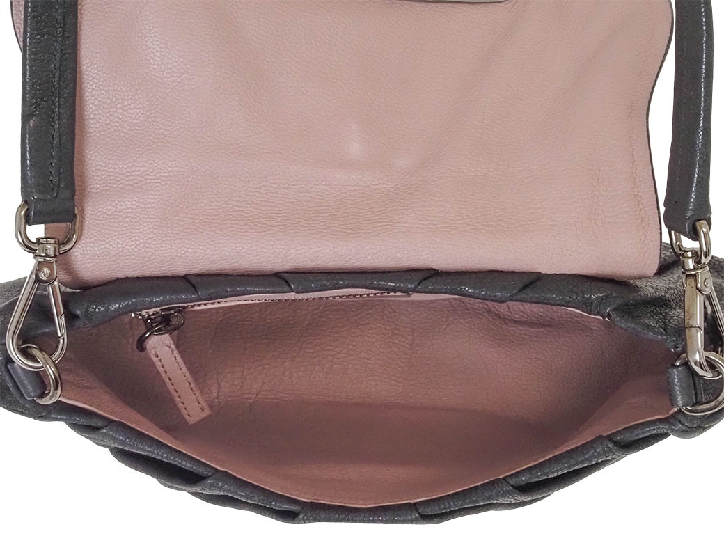| 外側 | 型崩れ シワ やや色あせ 革におうとつ、白っぽい浅いスリキズのようなもの、ひっかきキズ ビジューに小キズ 金具にキズ |