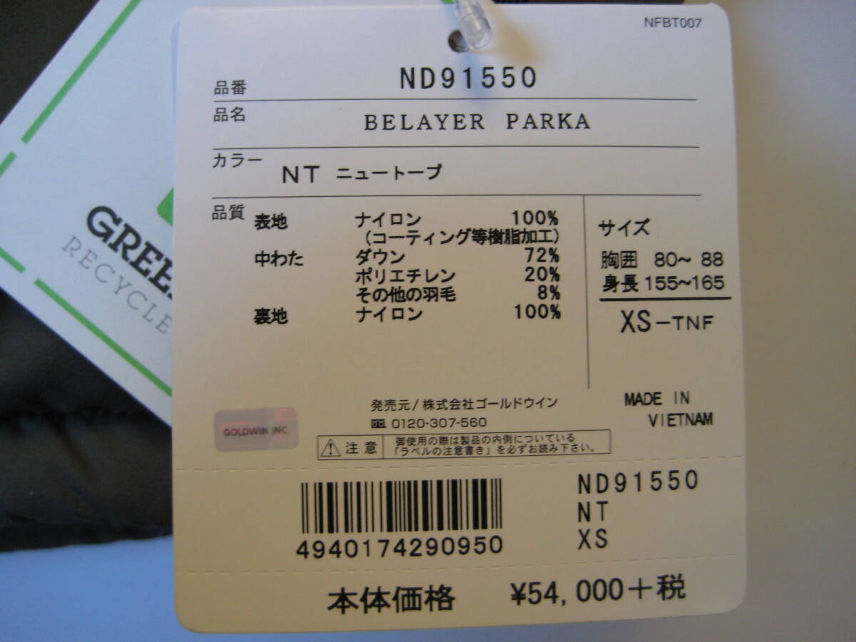 THE NORTH FACE ノースフェイス ND91550 ビレイヤーパーカ XSサイズ ニュートープ SUMMIT SERIES 新品未使用です。| 出价者 | 信用 | 价格 | 时间 |