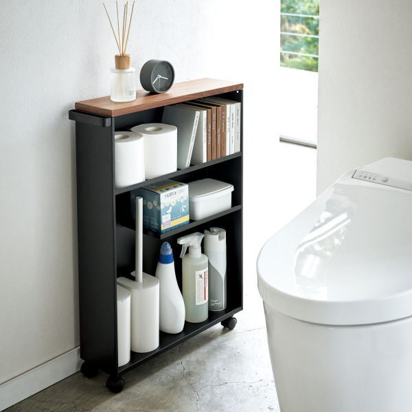 ハンドル付きのスリムなキャスター付きトイレラック。 文庫本やトイレットペーパーなどが収納できる便利なラックです。 トイレ用の洗剤や除菌シートもまとめて収納できます。 持ち運びがさっとできるハンドルや、底面はキャスターも付いているので移動も楽ですよ。 お届けの色はブラックです。(画像の小物類は付属しません) 【サイズ・素材など】 ■本体:幅130×奥行475×高さ685mm(キャスター込み) 約6.8kg ■内寸:下段/約幅125×奥行445×高さ270mm、中段/約幅125×奥行305×高さ150mm、上段/約幅125×奥行445×高さ190mm ■ハンドル、本体:スチール(粉体塗装) / 天板:天然木化粧繊維板(ラッカー塗装) ■組み立て式(取手、キャスターのみ取付け) ■耐荷重:下段・上段/約2kg、中段/約1kg、天板/約1kg 【送料・その他】 ■送料無料(北海道¥1000、沖縄、離島は別途見積り) ■発送まで2.3営業日お時間を頂いております。(土日祝は休業) 【その他・必ずご確認下さい。】 *お支払いいただく金額は落札金額+配送料金となります。 *商品の直接取引・送料着払いには対応しておりませんのでご了承ください。 *初期不良や運搬中の破損などは交換対応となります。 *商品が到着しましたら、不良、破損がないかご確認ください。 万一破損等ございましたら、3日以内にご連絡ください。お時間がたちますと、交換等できない場合がございます。 *当店の商品はすべて新品商品です。 *土日祝は休業の為、発送やご連絡ができません。 よろしくお願いします。 |