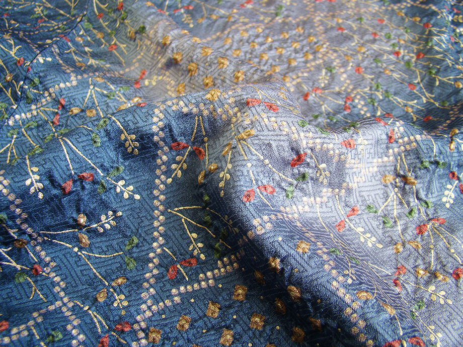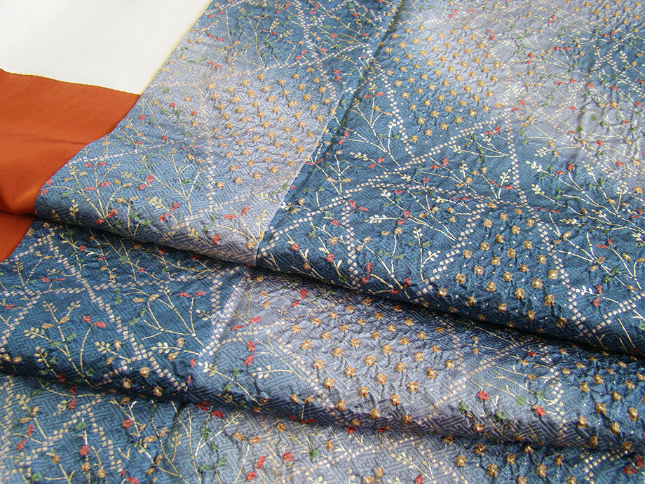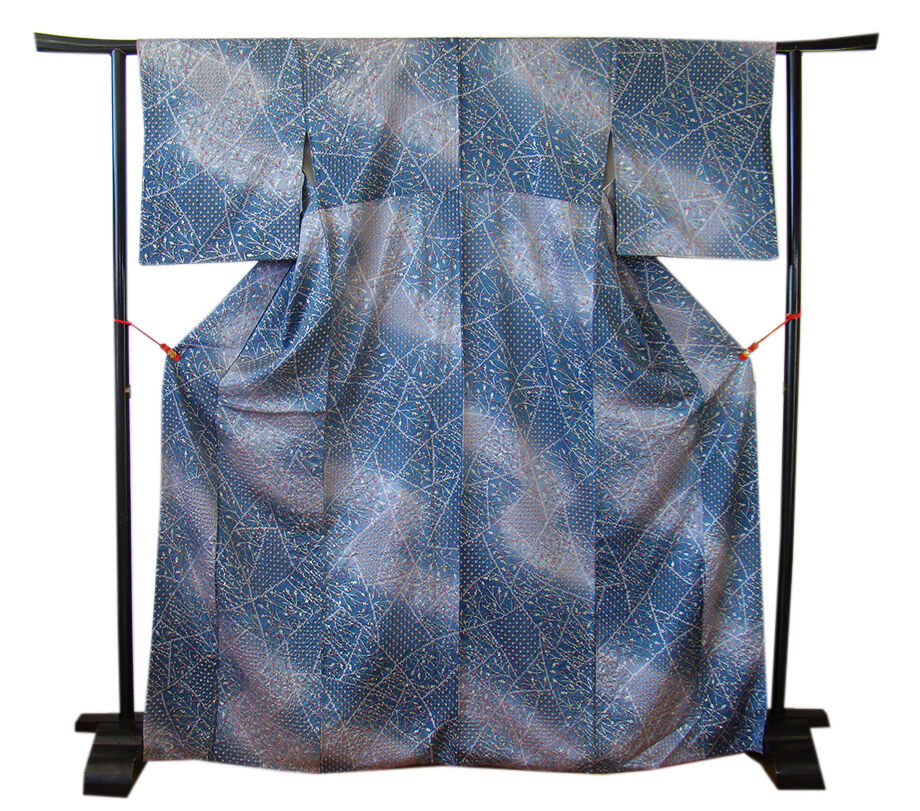 | 商品説明 | こちらのお品は袷ですので10月から5月までお召頂ければと思います。 しなやかで柔らかな手触りの着心地良いぽってりとした重めの紋意匠地の生地、 藍色地に渋い藤鼠色ぼかしに地模様入り、しっかりとした絞り入りに草木柄の金彩染柄、 八掛は赤茶色(正絹)、幅広い年代の方にお召頂けます。 |