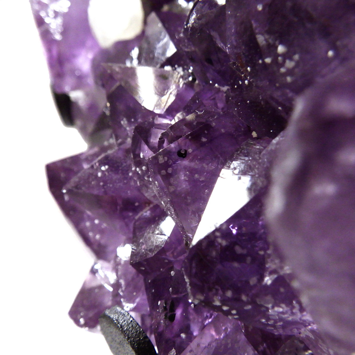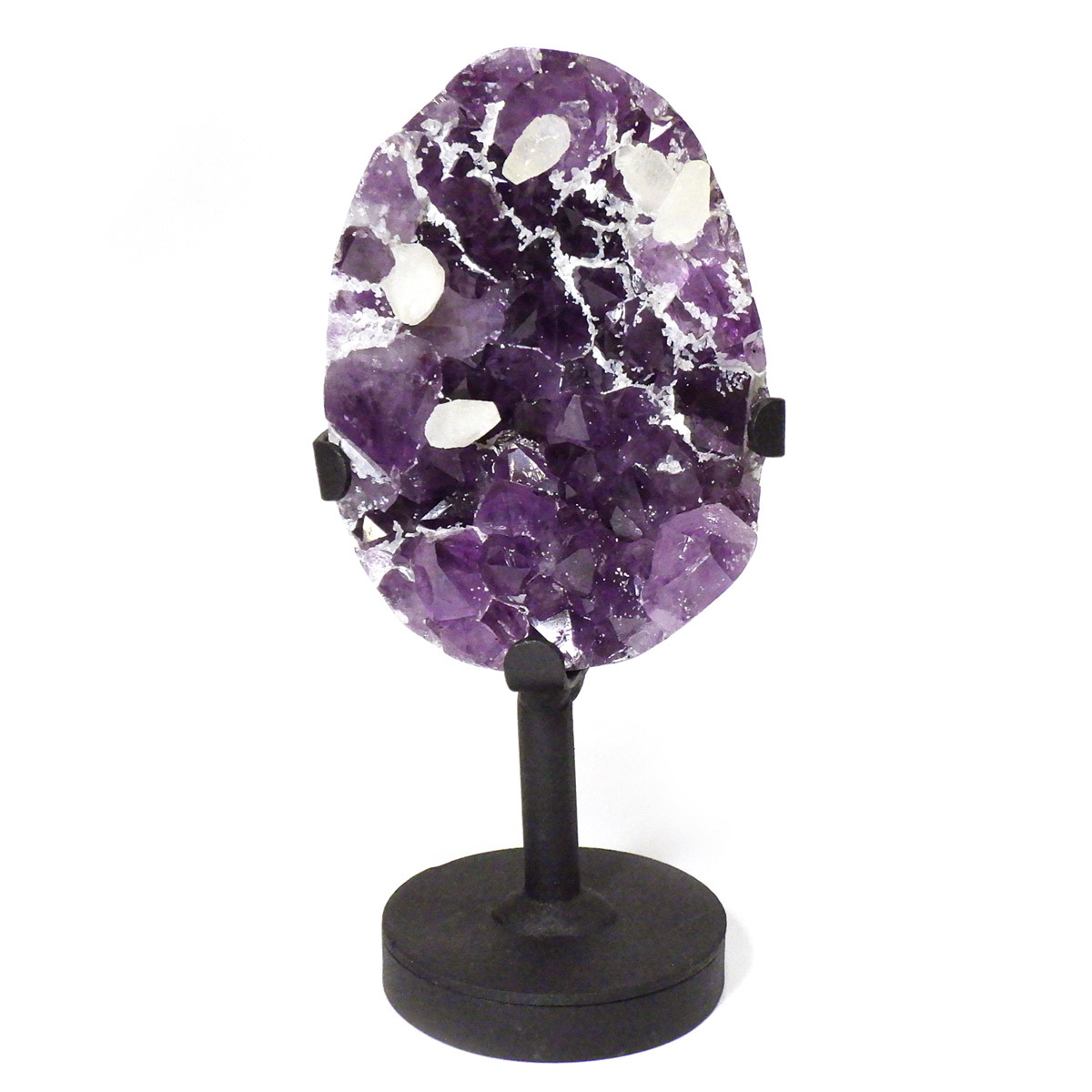 ウルグアイ産のアメジストクラスターです。良質なアメジストの証である深い紫の色がしっかりと入っています。一部、白いカルサイトが大きな結晶と細かな結晶でアクセント的に共生しています。鉄製飾り台付きでアメジストの美しさがより一層堪能できるかと思います。| 出价者 | 信用 | 价格 | 时间 |