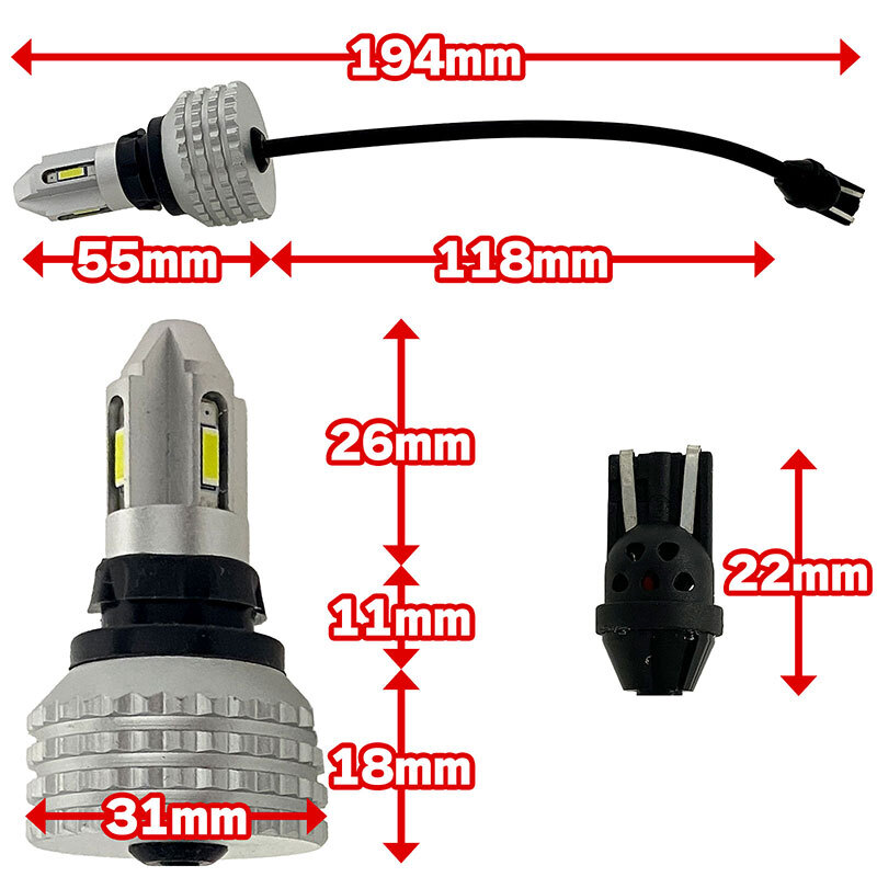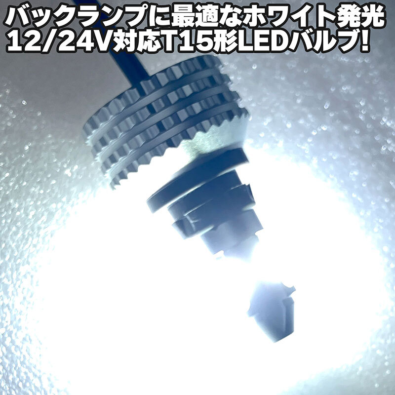 バックランプに最適なホワイト発光12/24V対応T15形LEDバルブ!| 商品構成 | T15LED×2個 |