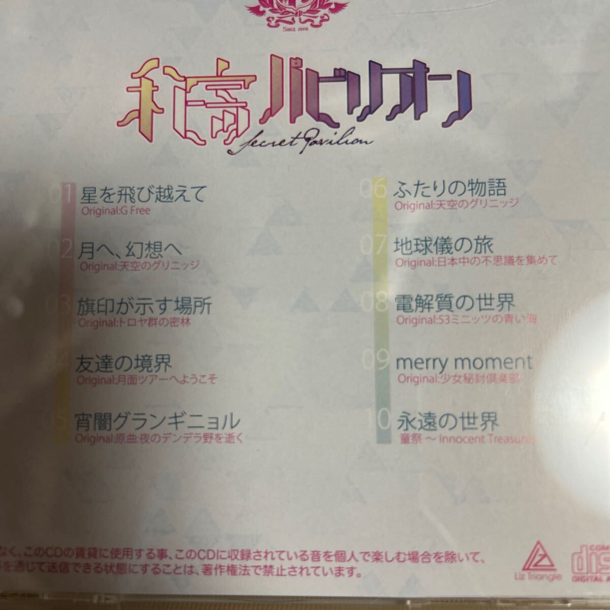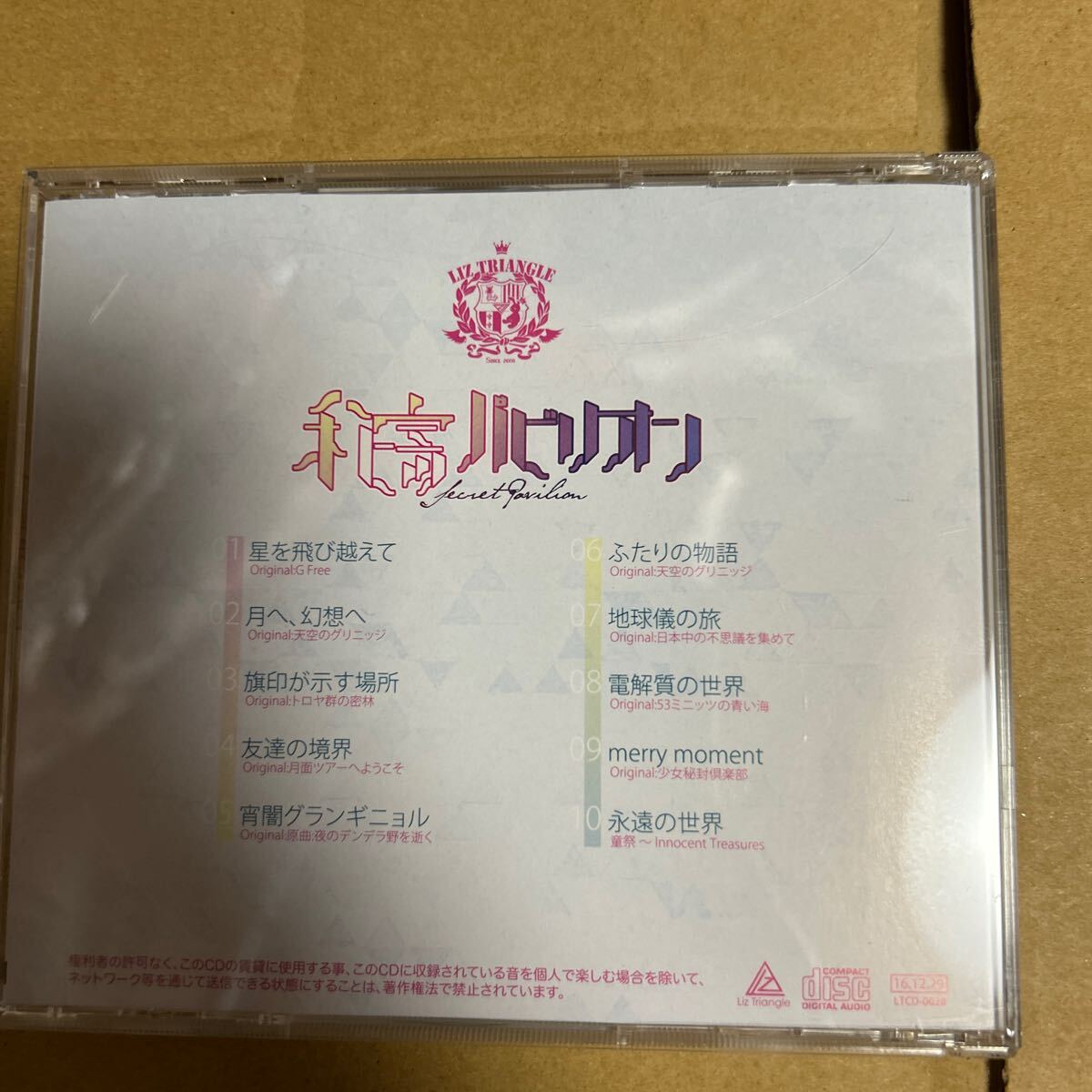 同人サークルのLiztriangleのCD ヒミツパビリオンです。ケースにキズがあります。また個人の保管品なので細かいキズや汚れなどはご容赦お願いいたします。| 出价者 | 信用 | 价格 | 时间 |