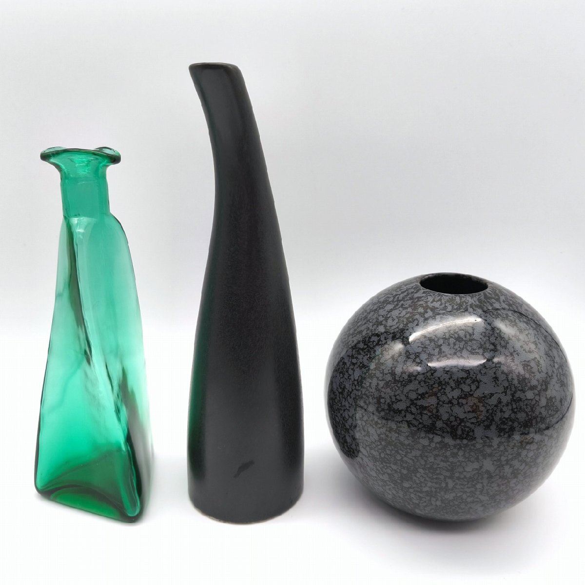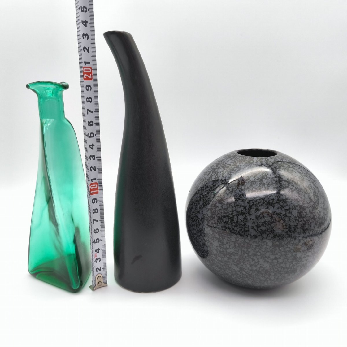 花器①(胴直径×高さ):約135×130㎜、花器②(底直径×高さ):約70×235㎜、花器③(幅×奥行×高さ):約73×65×197㎜、外箱なし、状態ランク:C 商品は画像に写っているものが全てです。どの花器にも使用による小キズやヨゴレが見受けられます。その他状態は画像をご確認ください。| 商品の状態ランクについて | ||