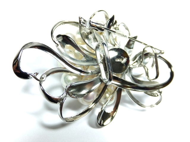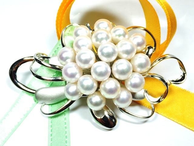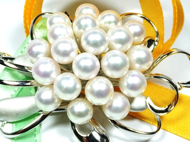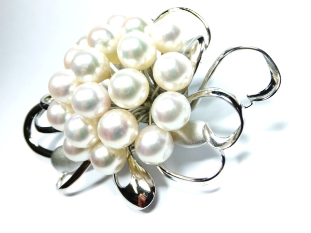 シルバー 銀製 ホワイトピンク 8-8.5㎜の あこや本真珠を使っています ミラー仕上げの中、マットな部分(つや消)がアクセントになって素敵。 【コサージュ パールブローチ】 ・あこや真珠 パールブローチは、卒園・卒業式、入学式、フォーマルな装いに最適。 ・普段の装いに、ちょっと アレンジするだけで気品ある、清楚な おとなの女性に・・・ ◆詳細◆ ・使用宝石 / あこや本真珠(アコヤパール) ・宝石・真珠 サイズ / 約 8.0 ㎜- 8.5 ㎜ 20 個 ・全体サイズ / 約 縦 52.0 ㎜ X 横 85.0 ㎜ X 厚み 30.0 ㎜ ・金属素材 / シルバー銀製(SILVER の刻印有り) ・総重量 / 約 38.0 g ・付属品 / 専用ケース付き ・保証書付き | |