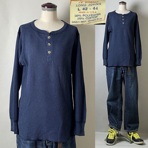 ★【名作 インナー USA製】ビンテージ J.E.MORGAN J.E.モーガン LONG JONES ロングジョン ヘンリーネック サーマル ロンT Tシャツ L 長袖