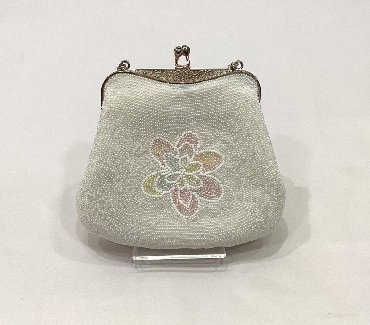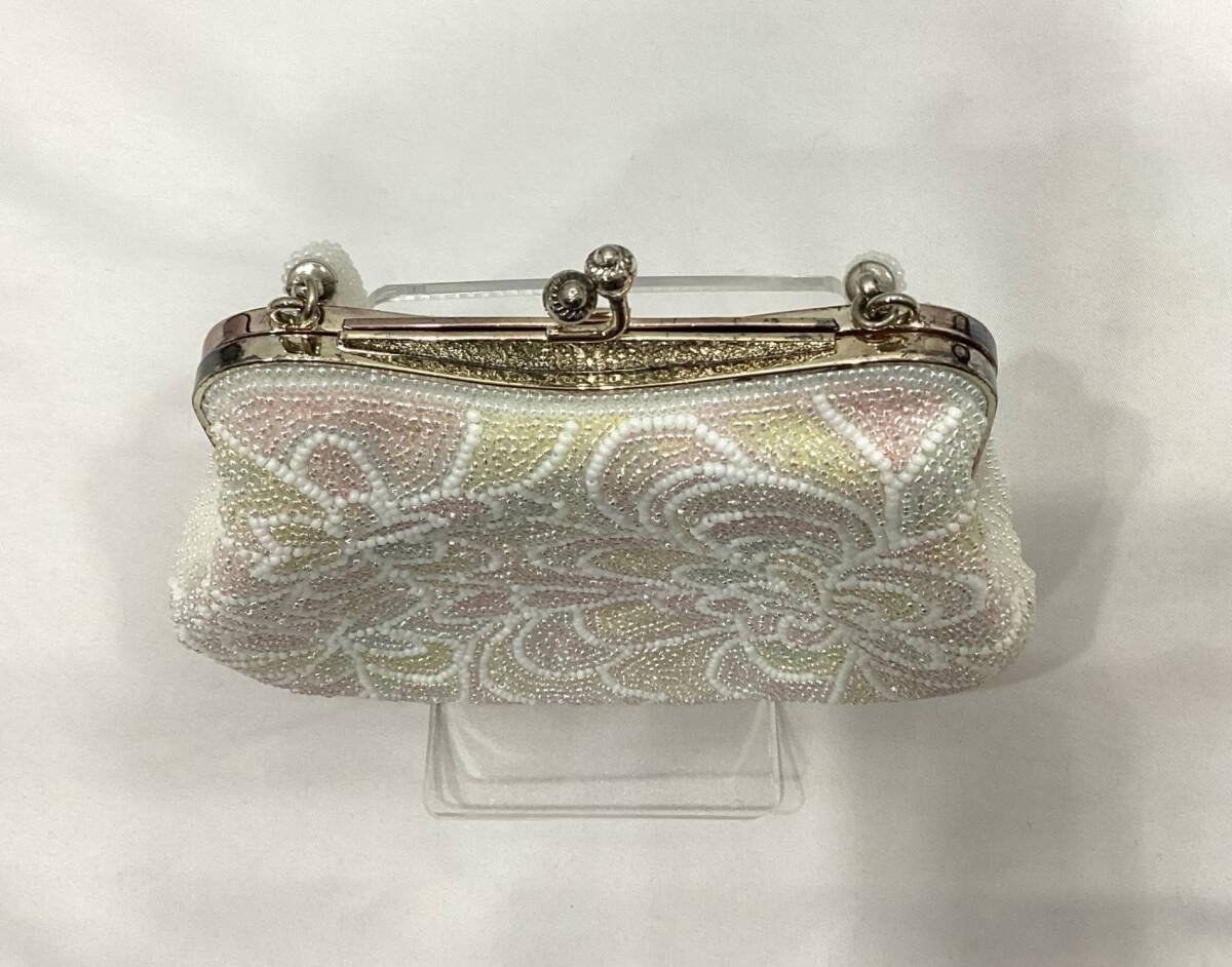 | ビーズバック/美品/パステルカラー/がま口/手持ち/花柄/ビーズ刺しゅう/レトロ/アンティーク/女物【ゆずりは】11007 |