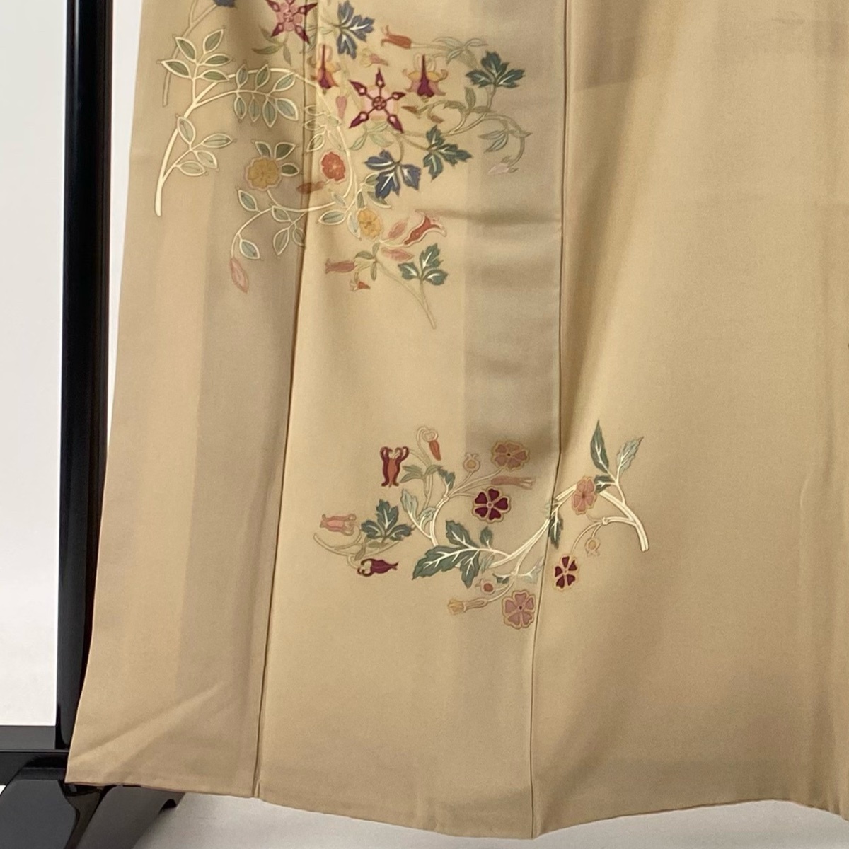 | 付下げ 秀品 草花 金彩 薄茶色 袷 身丈162 裄丈65.5 M 正絹 【中古】 |