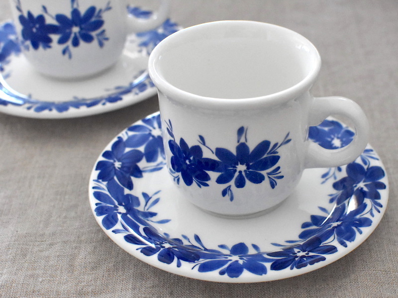 青い素朴な花柄のデザインが可愛らしいイタリア QUADRIFOGLIO(クアドリフォリオ)のカップ&ソーサー2客です。