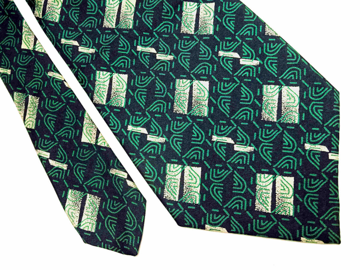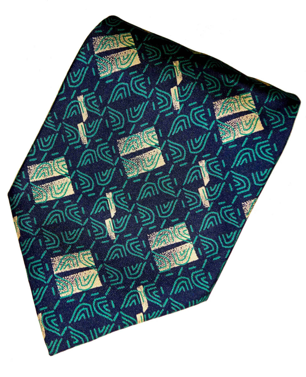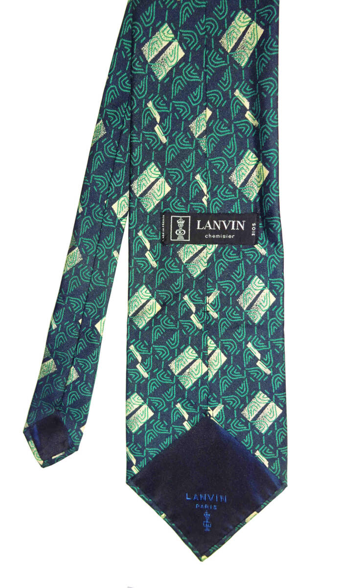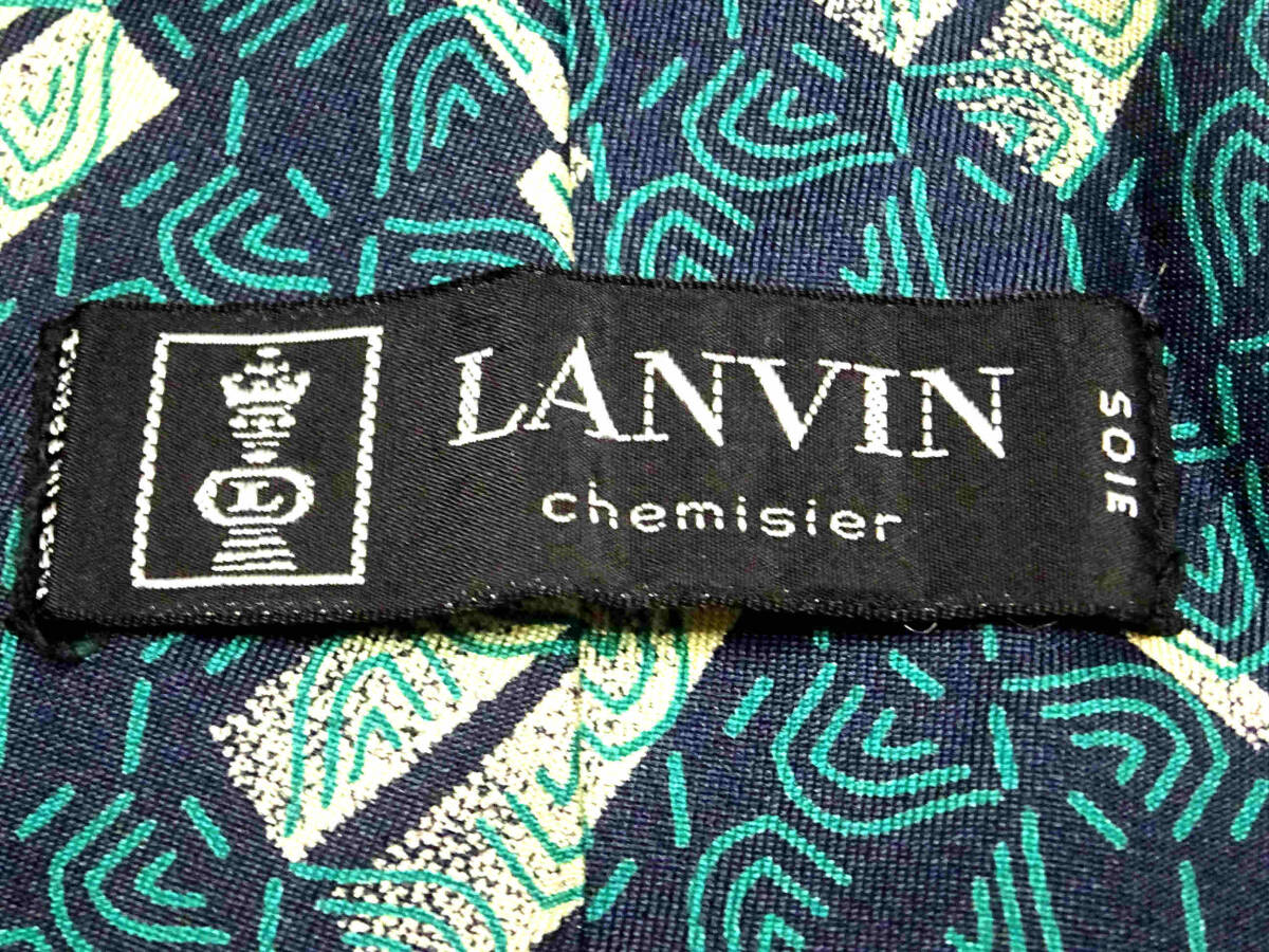 | タイトル | ●LANVIN PARIS chemisier ランバン シェミジエ / フランス製・シルク・ネクタイ・ネイビーブルー地・ボックス柄(イエロー、グリーン) / USED |