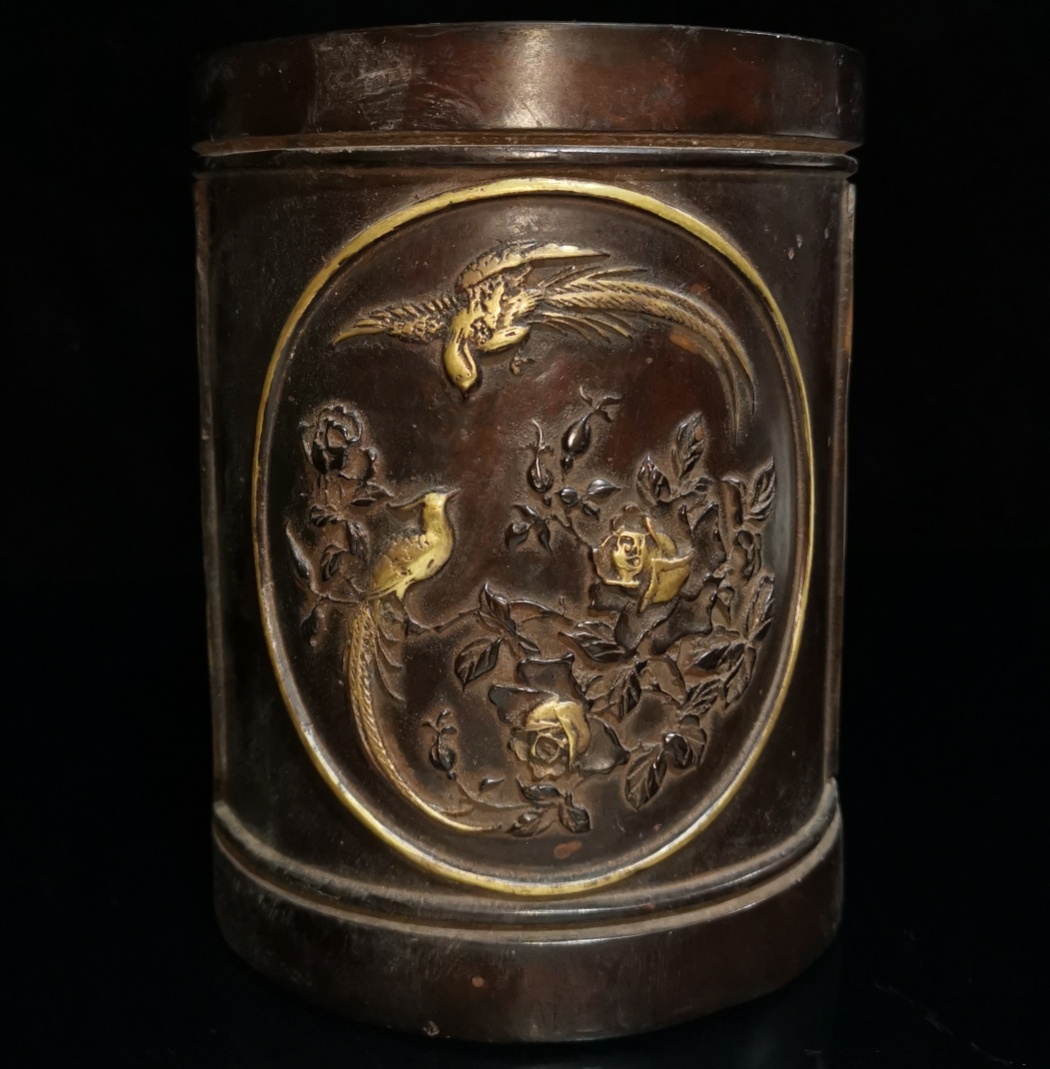 | 中国骨董品 人間国宝 銅制 極細工【真鍮製のペン立てです】 時代物 珍品旧蔵 伝世家珍 置物 | |||